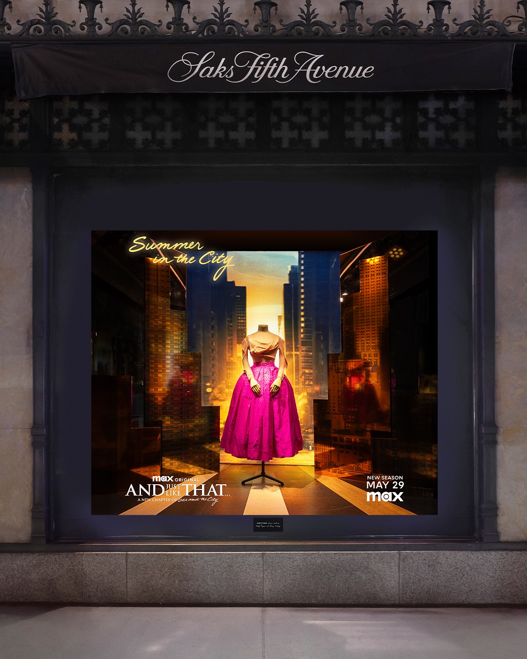 Для своїх вітрин команда Saks Fifth Avenue створила інсталяції за мотивами художників з костюмів сиквелу Моллі Роджерс та Денні Сантьяго. У вікнах будівлі можна побачити образи з колекцій Vivienne Westwood та Simone Rocha, які раніше з’являлися на Керрі Бредшоу в попередніх епізодах «І просто так».
