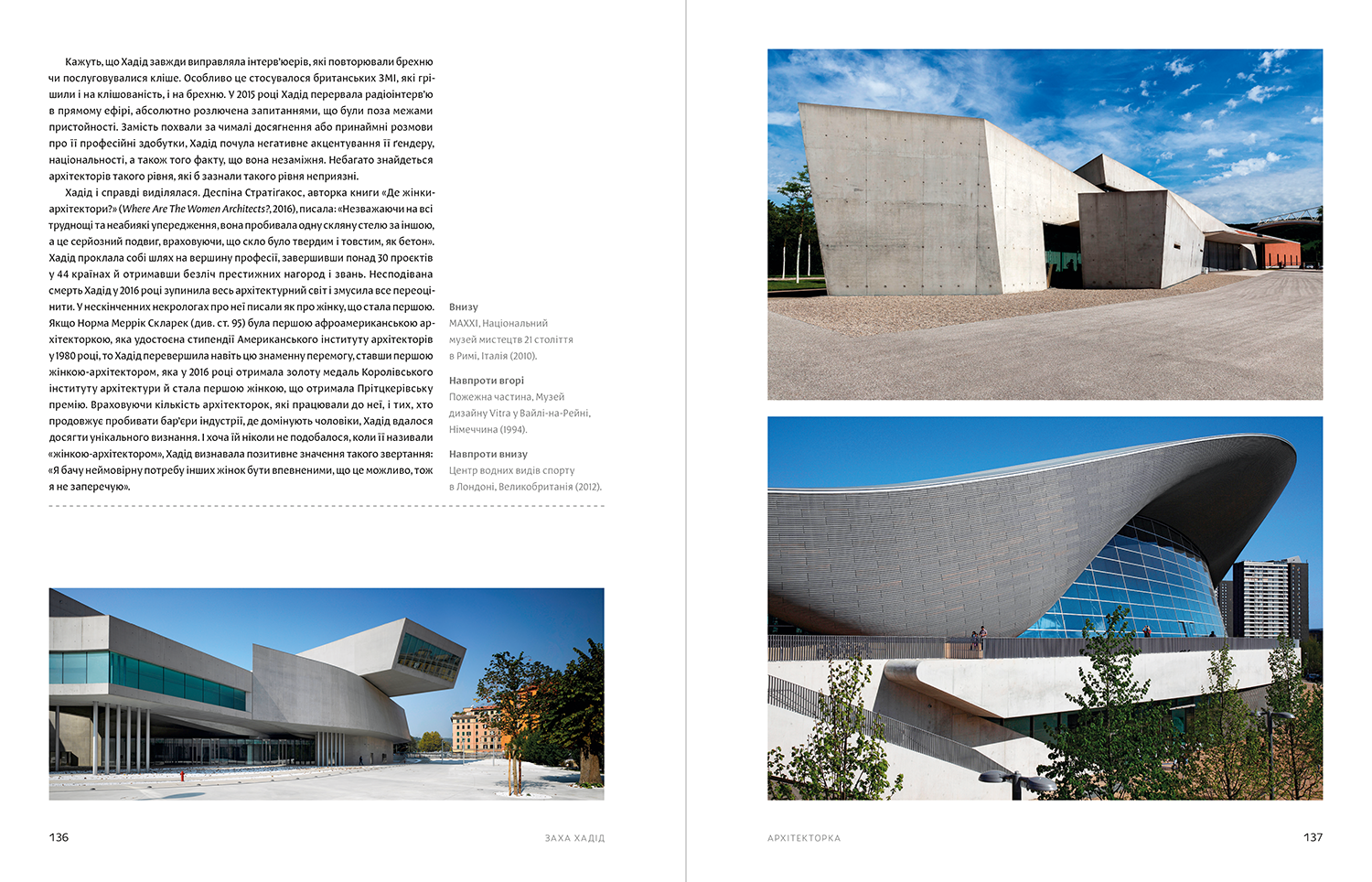 У книзі, зокрема, зібрані історії про таких відомих жінок, як Заха Хадід, Нері Оксман, Олександра Екстер, Лілі Райх та ін.
