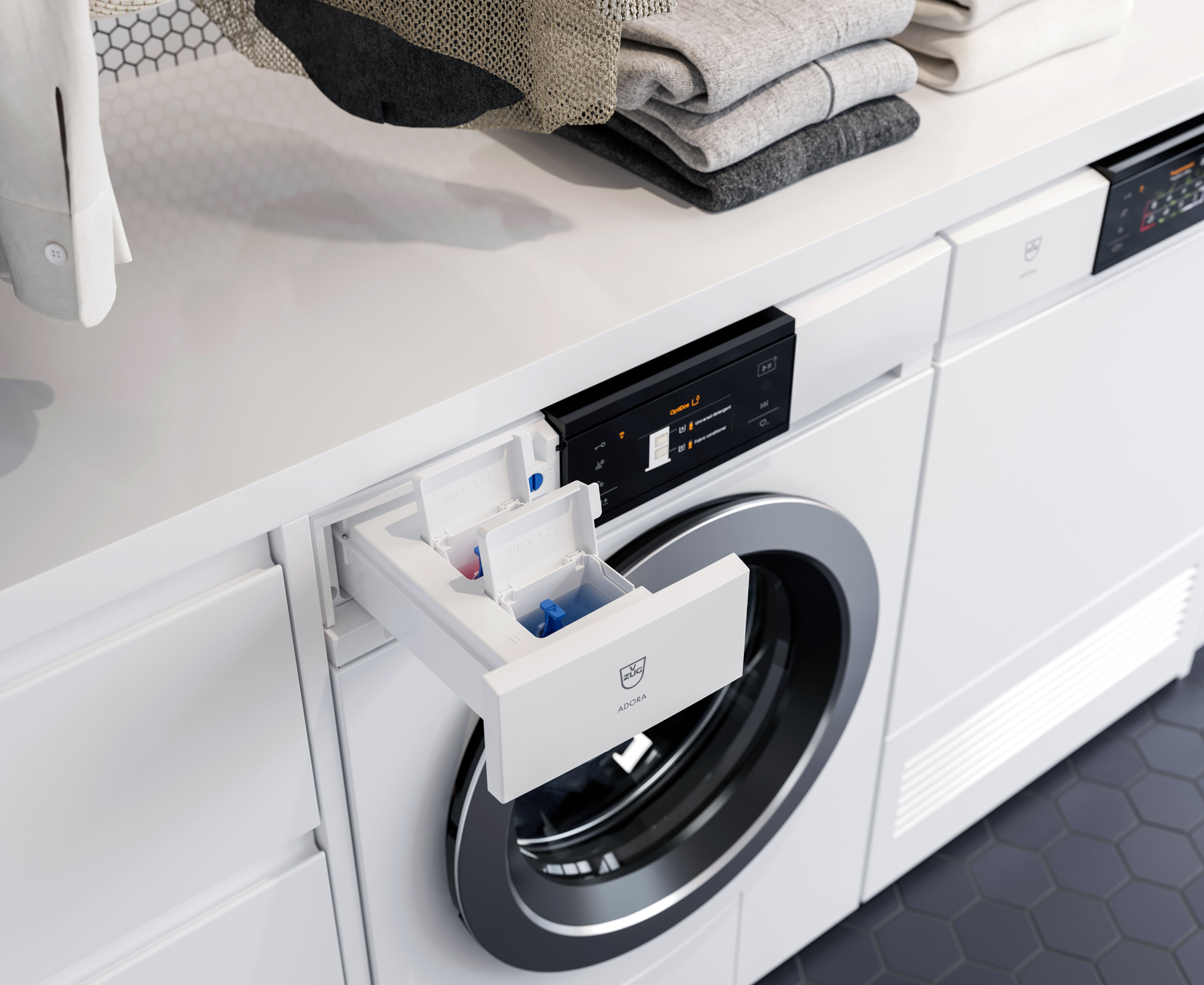 Также в AdoraWash V6000 есть интеллектуальная функция отсрочки старта — OptiTime, которая оптимально использует доступное время для более экономичной стирки. Стиральное средство тоже можно расходовать разумно: автоматическая функция OptiDos доступна в стиральной машине V4000 и позволяет AdoraWash точно его дозировать.