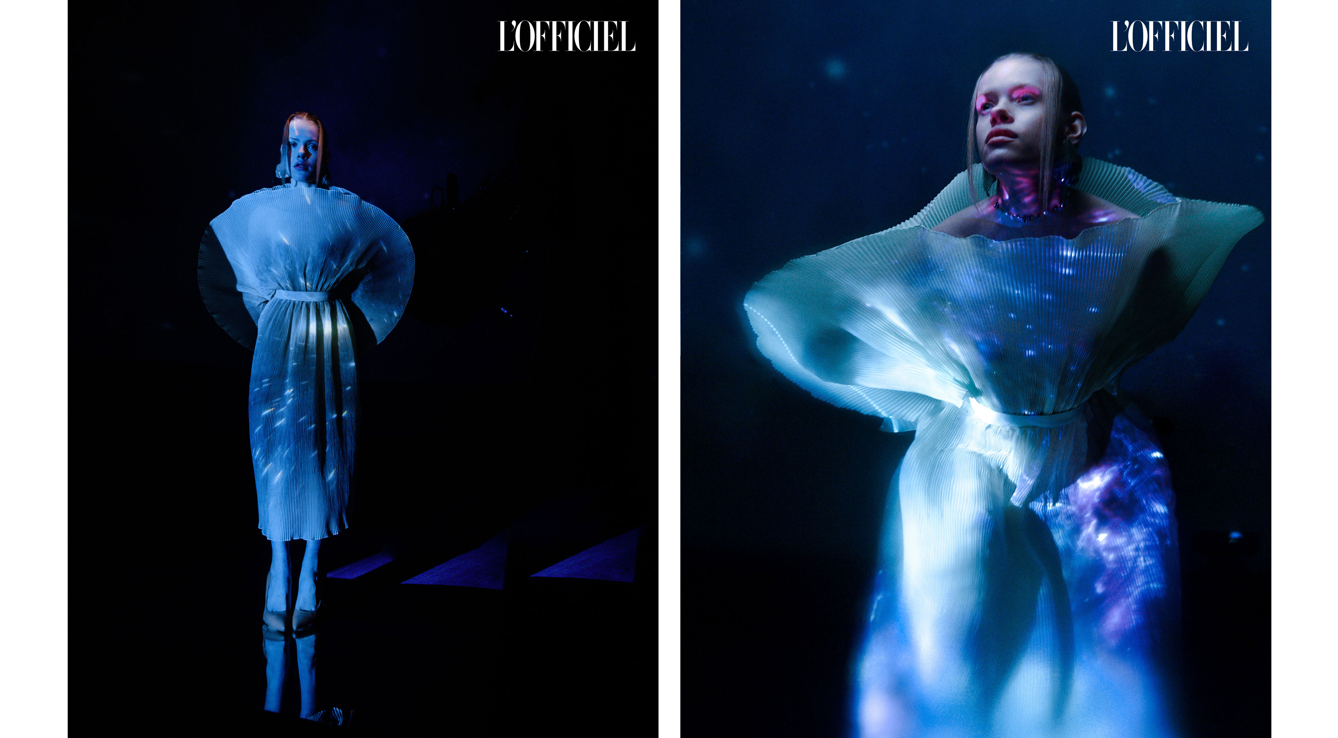 Несмотря на все события реальности, мода все еще остается местом для сюрреализма и красоты, свободным от условностей и границ. Она возвращается к своему главному предназначению — погрузить нас в красивую мечту. Команда передала идею космической фантазии, которая рождается из игры света, текстур и пространства.