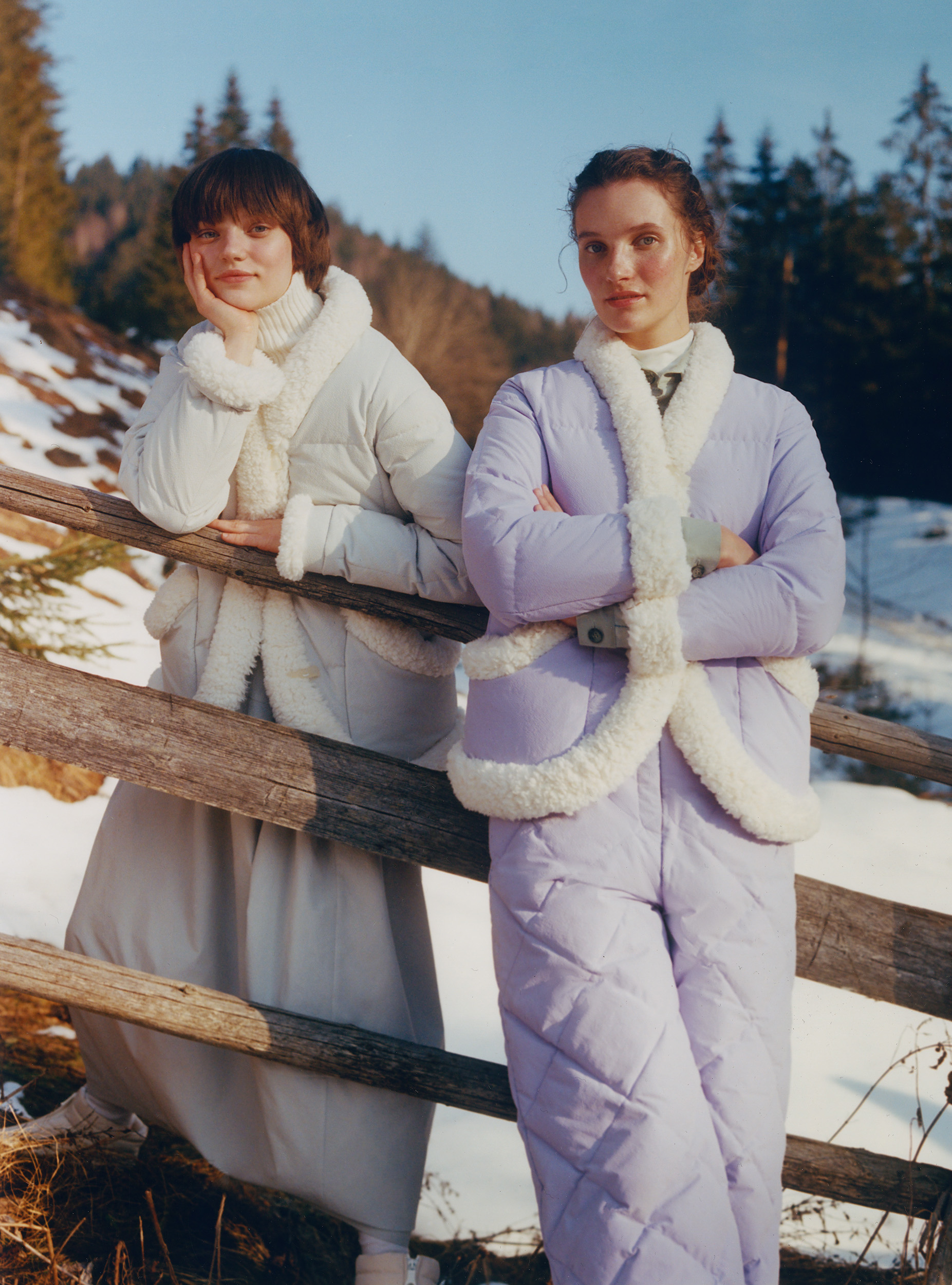 Съемку коллекции провели в Карпатах, и заснеженные склоны гор стали прекрасной обстановкой для того, чтобы показать вещи с ширлингом.