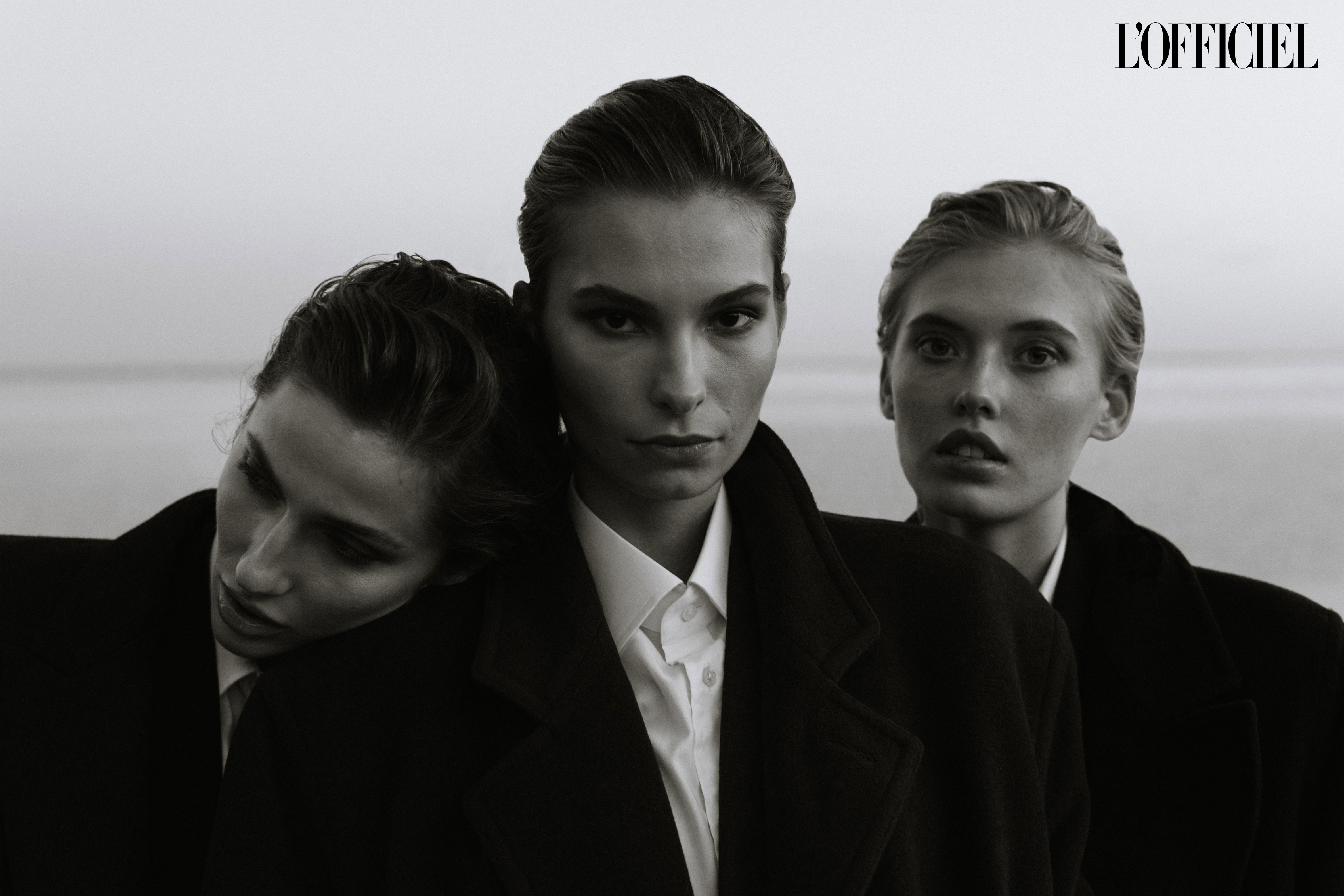 Дарина (слева): пальто Hugo Boss; костюм Oversized Studio; рубашка Calvin Klein. Вита (по центру): пальто Max Mara; костюм Oversized Studio; рубашка Karl Lagerfeld. Анастасия (справа): пальто Zara; костюм Oversized Studio; рубашка Guess