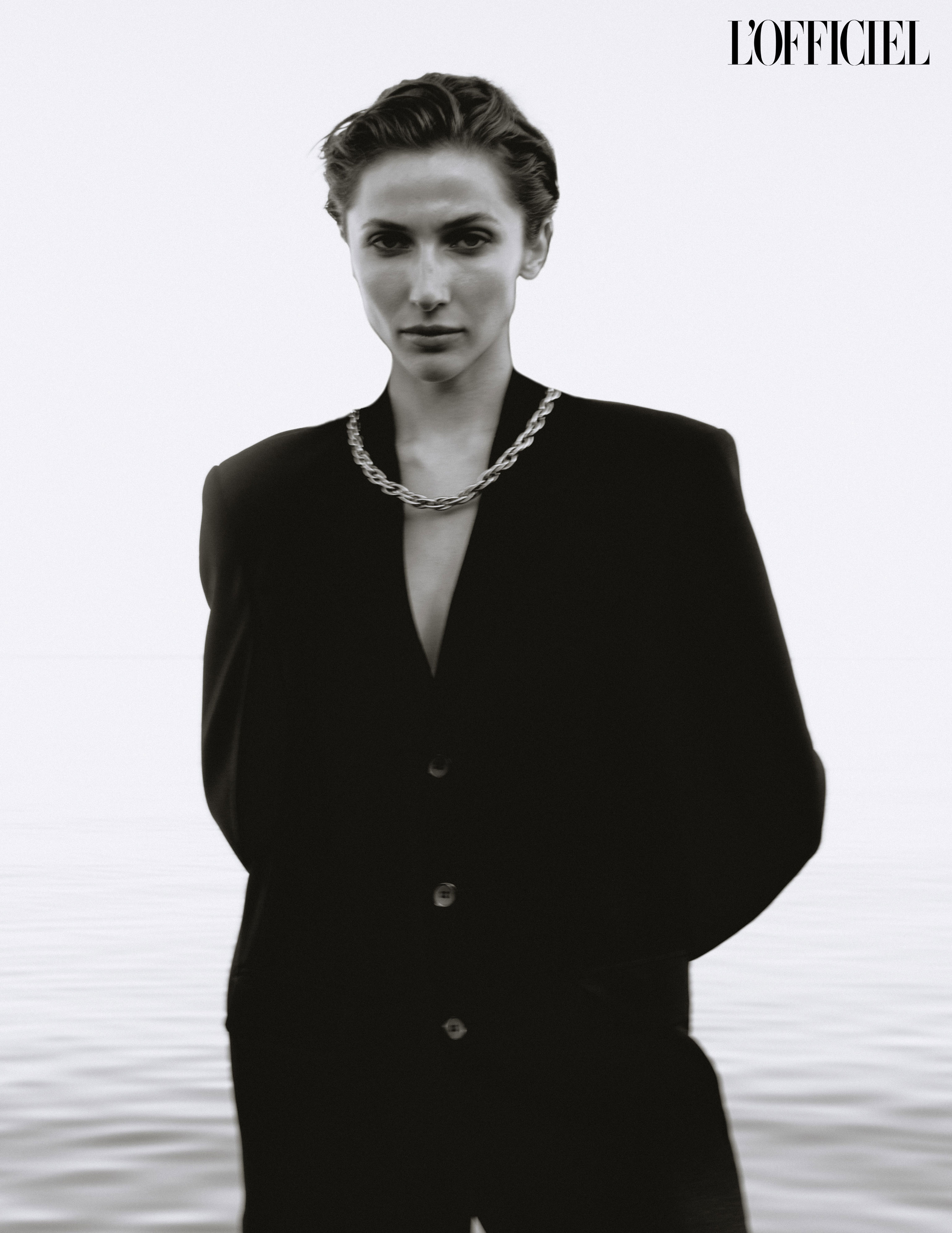 Слева: пальто Max Mara; костюм с кроп-жакетом Oversized Studio; топ Frankie Shop; браслет Monet; кольца Brua; ботинки Dr. Martens. Справа: рубашка Saint Laurent; брюки Oversized Studio; ботинки Prada