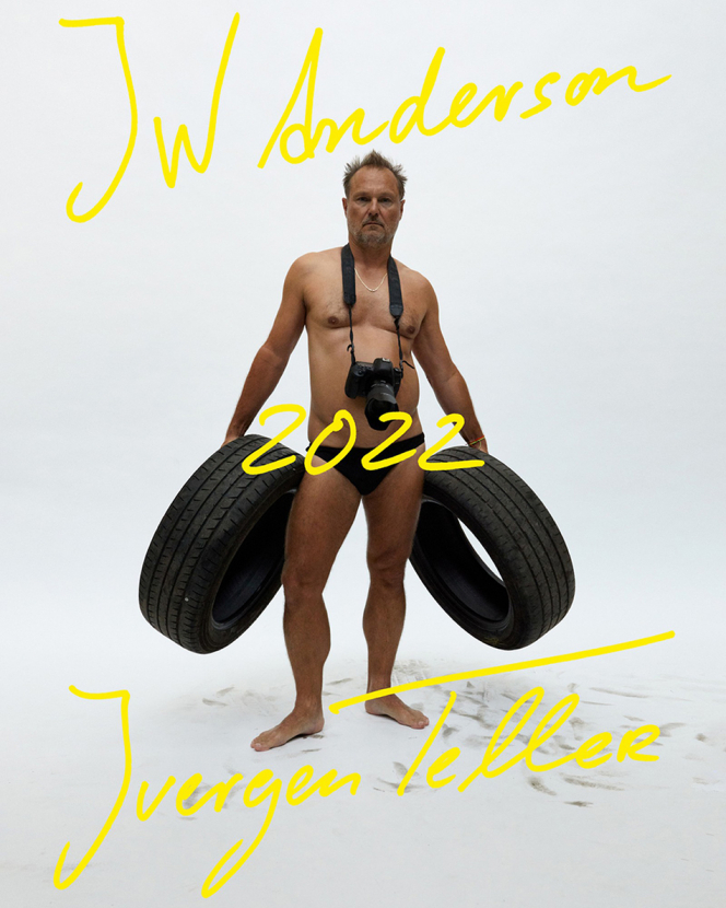 JW Anderson показали новую рекламную кампанию коллекции весна-лето 2022. На этот раз ее снял популярный фотограф Юрген Теллер, который и сам выступил в роли модели. На главном фото кампейна — фешн-фотограф в одних плавках, с камерой на шее и шинами в руках.