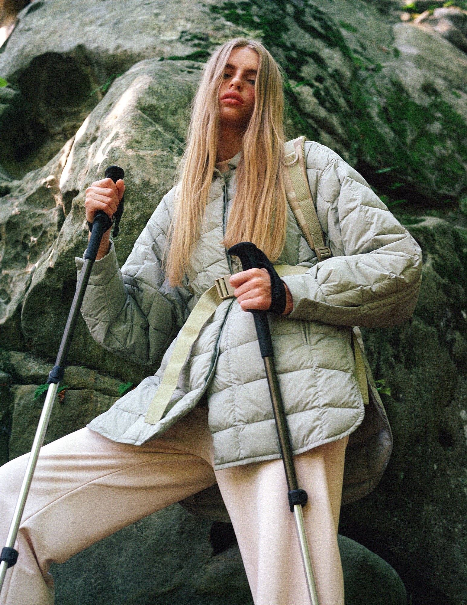 Новые модели курток Nuna Jacket, Tuttu Jacket и Ukpik Jacket утеплены технологичным материалом PrimaLoft, который максимально напоминает по своим тепловым качествам пух и, кроме того, обладает водоотталкивающими свойствами, — идеально для осенних дождей. Такой же утеплитель был выбран для брюк, шорт и мини-юбок, чтобы сохранить их не только теплыми, но и тонкими и легкими.