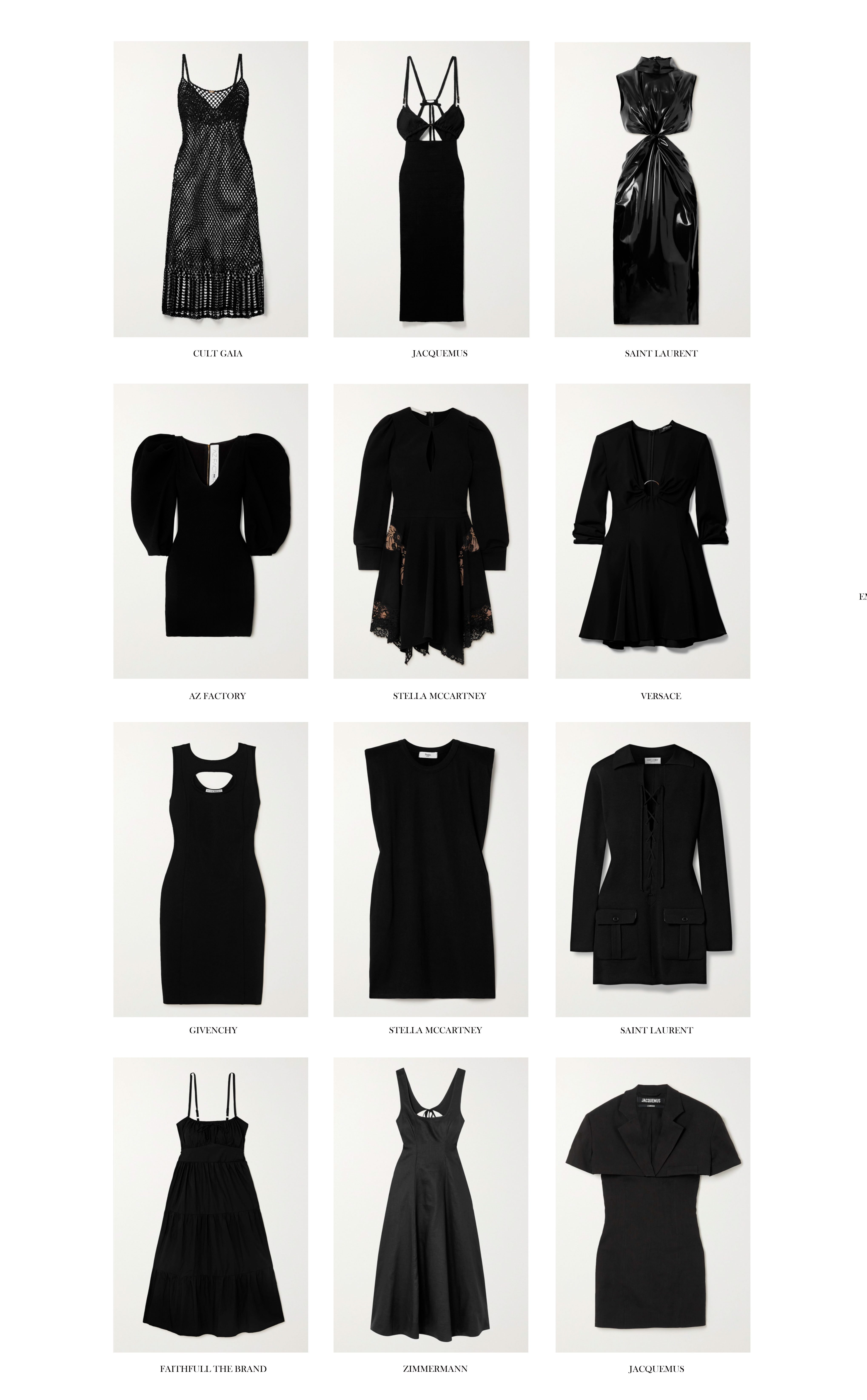 Укороченные туники, соблазнительные вечерние платья на бретелях или обнажающие участки тела макси — чёрные платья сегодня выглядят не менее расслабленно, чем привычные разноцветные. Дополнять их можно как футуристическими аксессуарами металлических фактур, так и экзотическими цветными браслетами, массивными серьгами и причудливыми босоножками на танкетках.