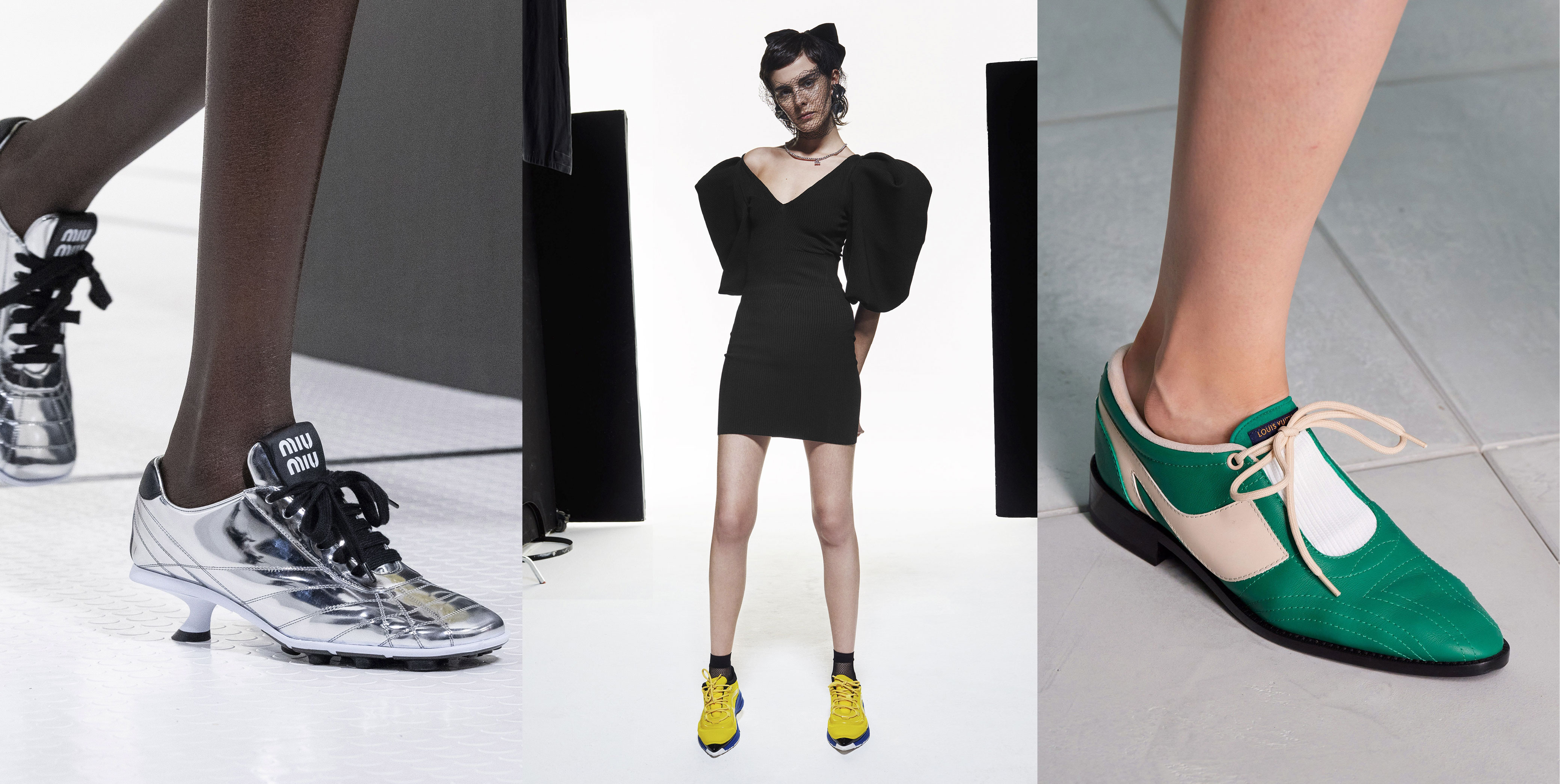 Альбер Эльбаз привел всех модников в восторг, представив в коллекции своего нового бренда A-Z Factory спортивные туфли c заостренным носком, которые запросто можно "выгулять" по городу или вместе с вечерним платьем. Остроумные версии футбольных бутс есть у Miu Miu и Louis Vuitton.
