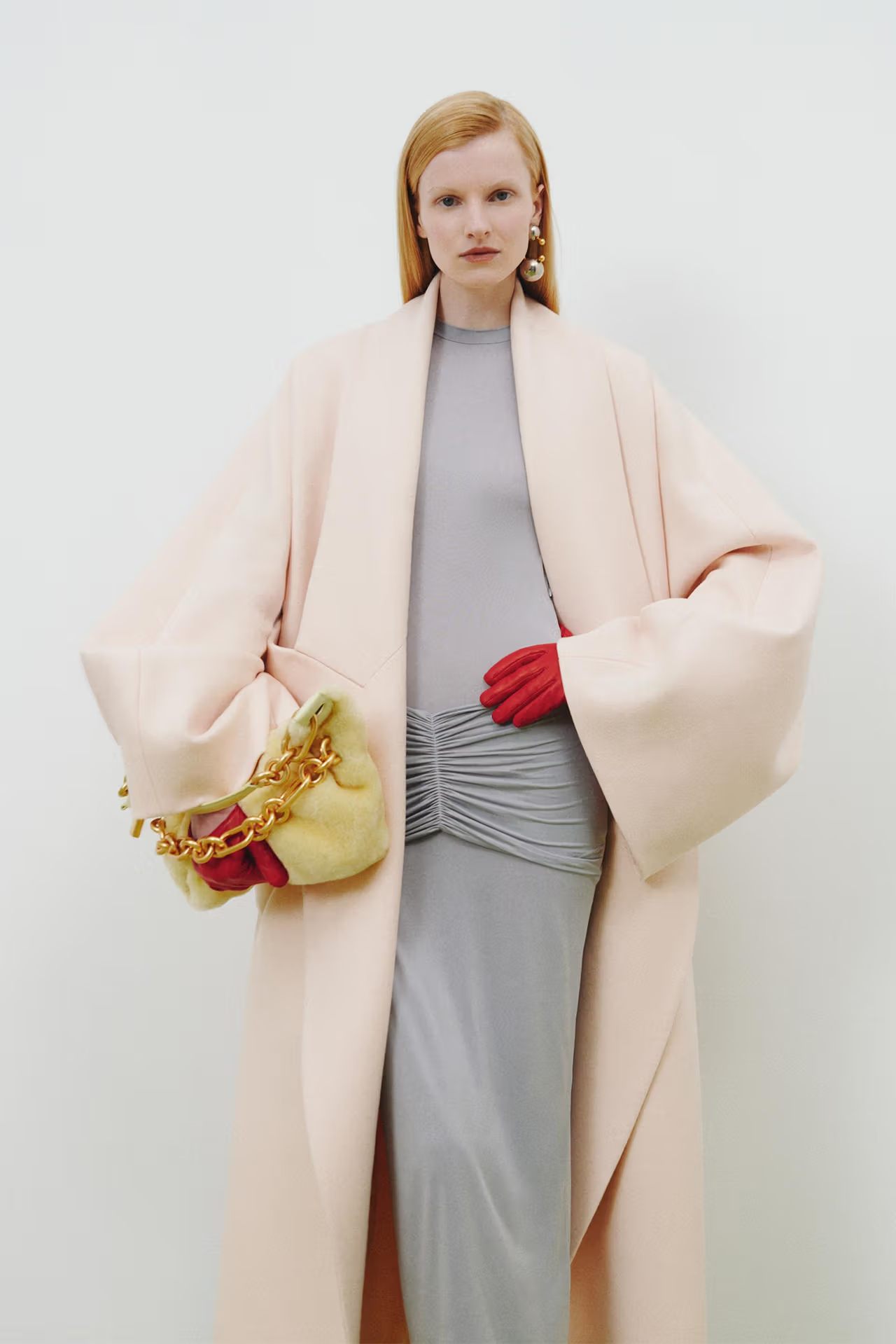 У колекції переважали розслабленні силуети, які втілилися в сукнях різноманітних довжин, драпірування котрих підкреслювали лінії стегон чи декольте, пальта з м’якої та структурної вовни, болеро, топи та спідниці з розрізами. Чоловіча частина колекції pre-sping — 2026 теж отримала пом’якшення. Тут — сорочки з невагомих тканин, вільні брюки та жакети.