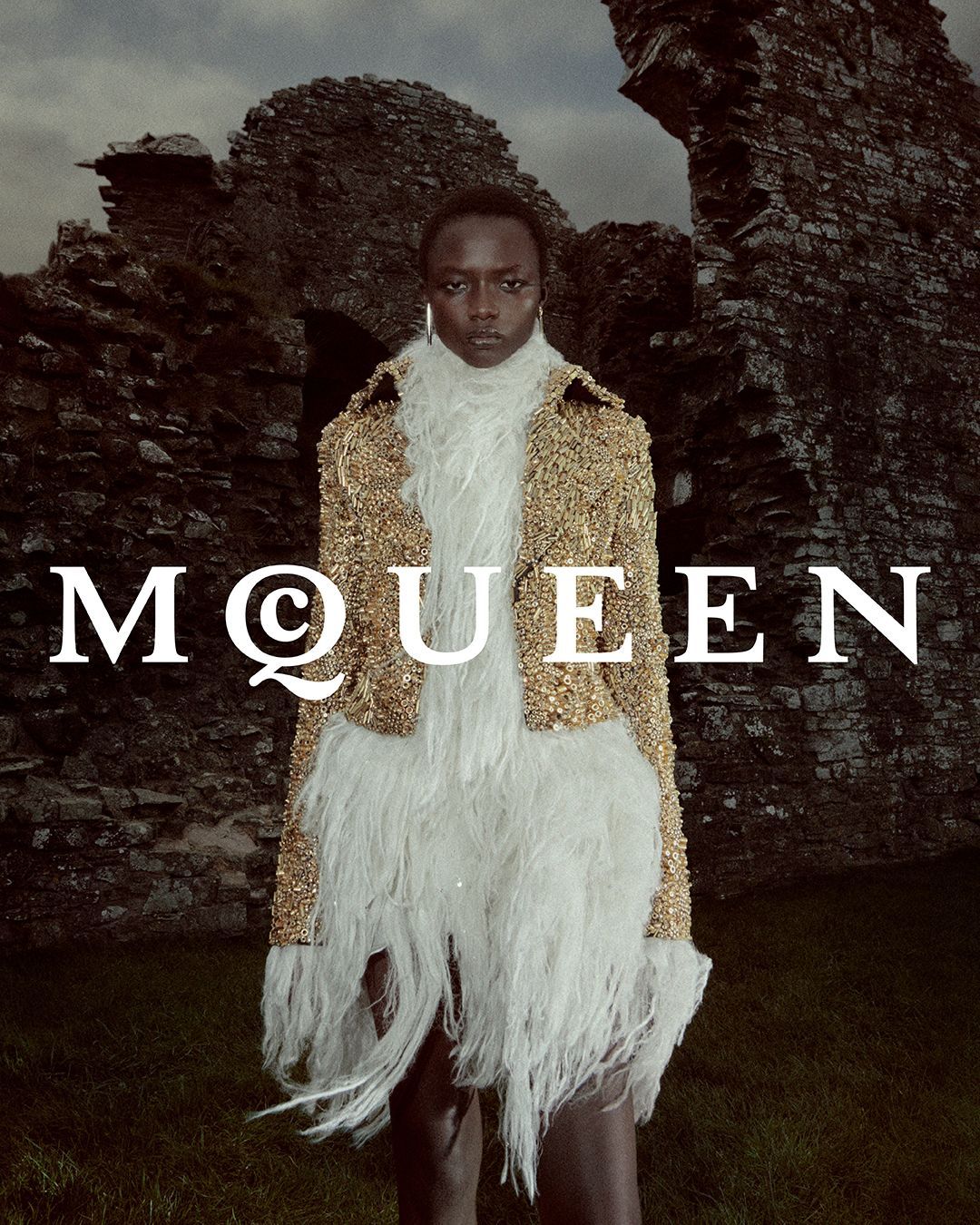 Містичний кампейн McQueen весна-літо 2025 зображає моделей на тлі уельського замка Лланстефан. Зняті Гленом Лачфордом, світлини досліджують дух банші — фольклорного образу, що представлений в історії McQueen і відсилає до ірландської спадщини креативного директора Шона МакГірра.