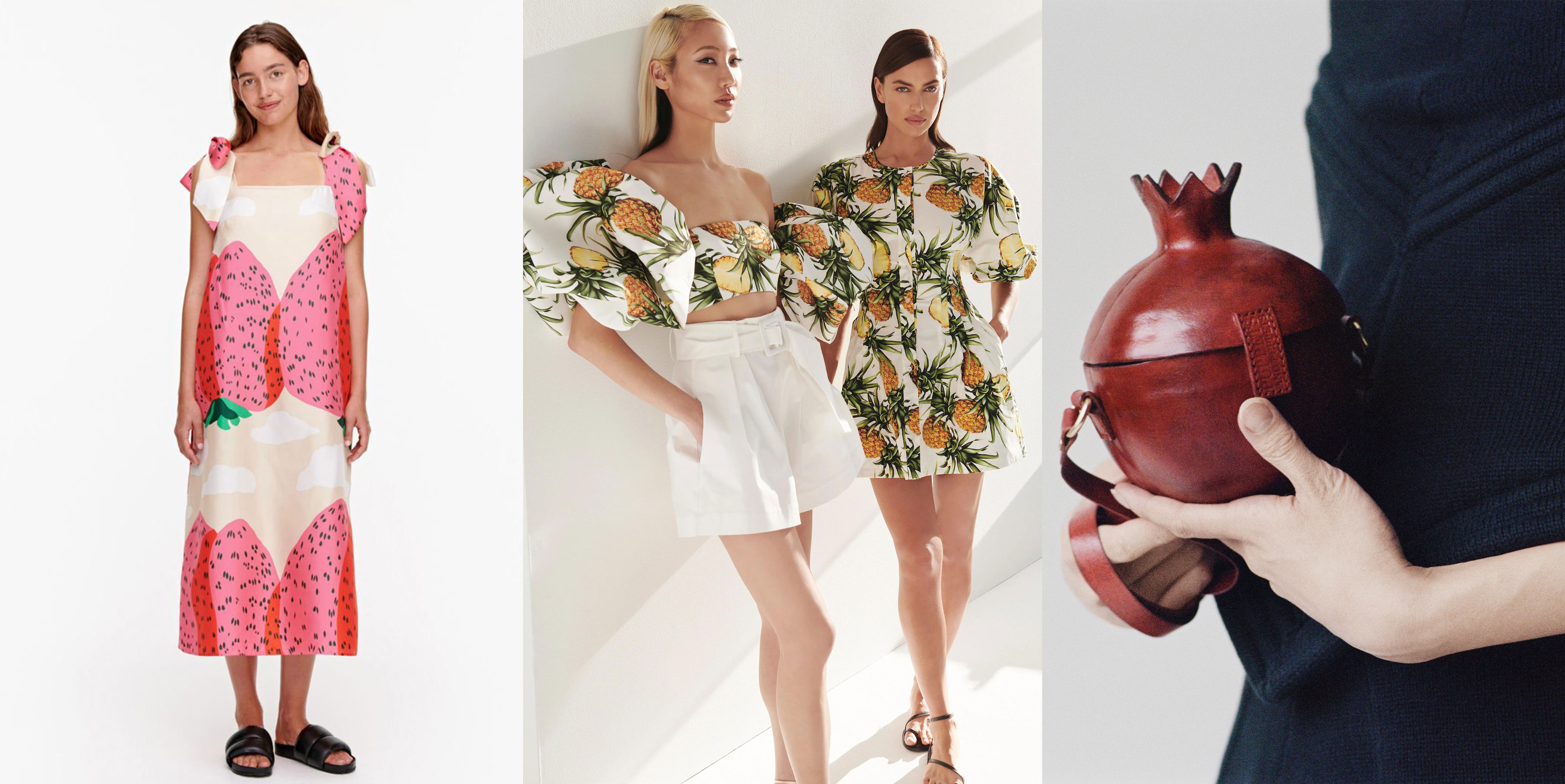 Вместе с летом к нам возвращается и желание ярких красок и оптимистичных принтов. У нас появляется свобода носить белое и разноцветное, гулять на ветру в летящих сарафанах, пить ягодные морсы и наслаждаться спелыми сезонными фруктами. Тенденция к земледелию и садоводству значительно выросла после многих месяцев самоизоляции, и совсем неудивительно, что красочные сливы, вишни, клубника и солнечные лимоны словно из корзины рассыпались среди модных трендов этого лета.