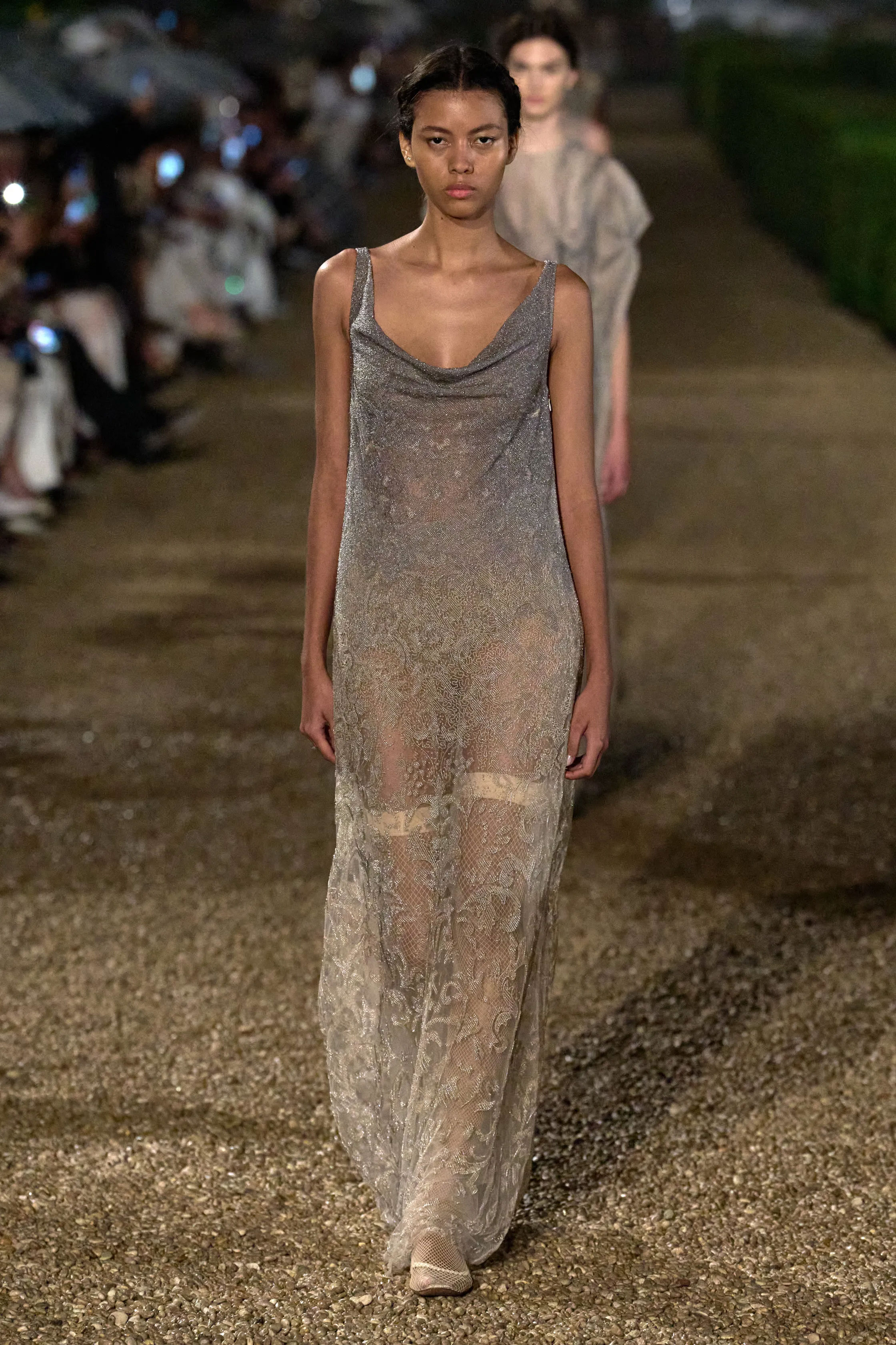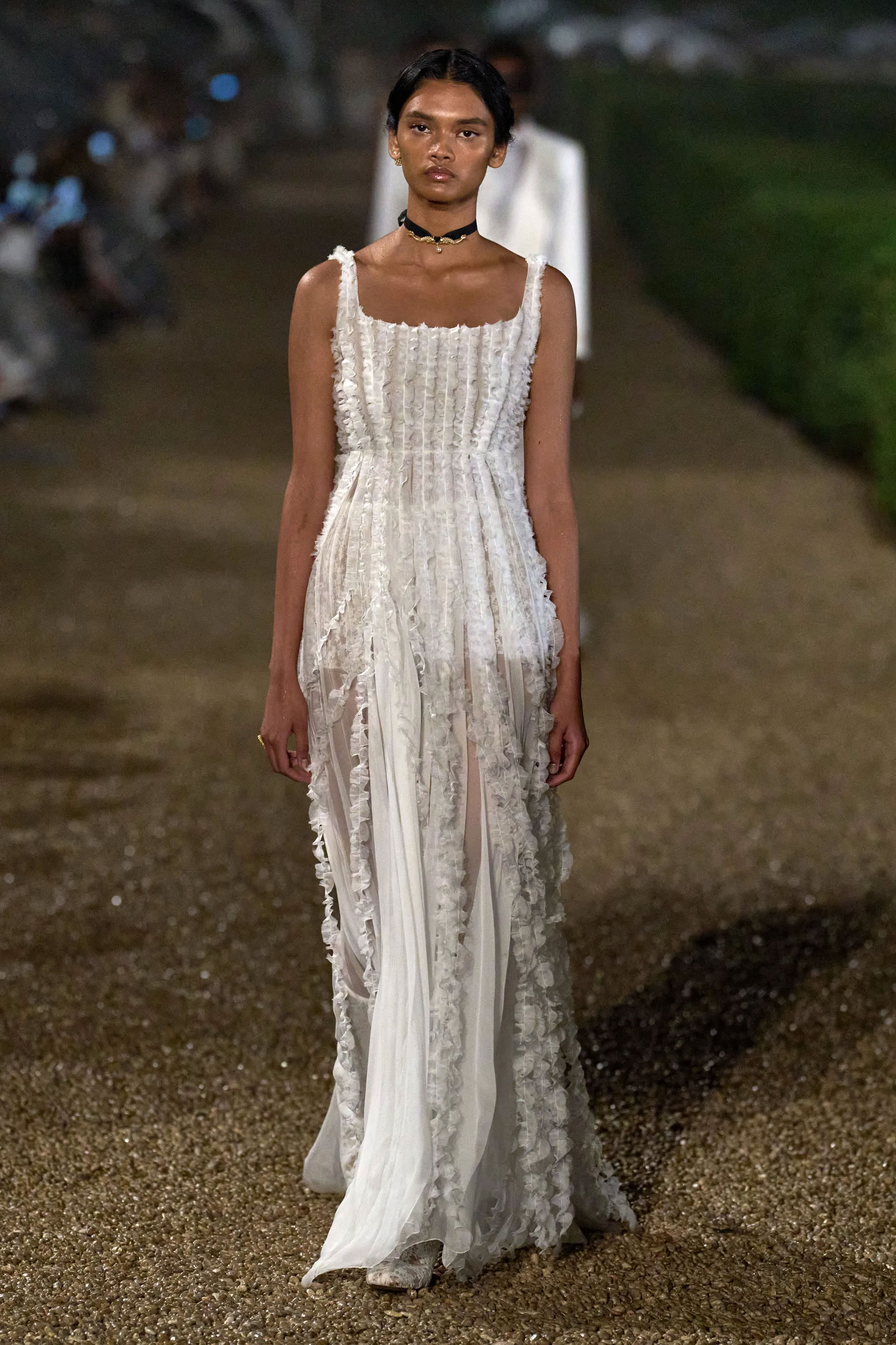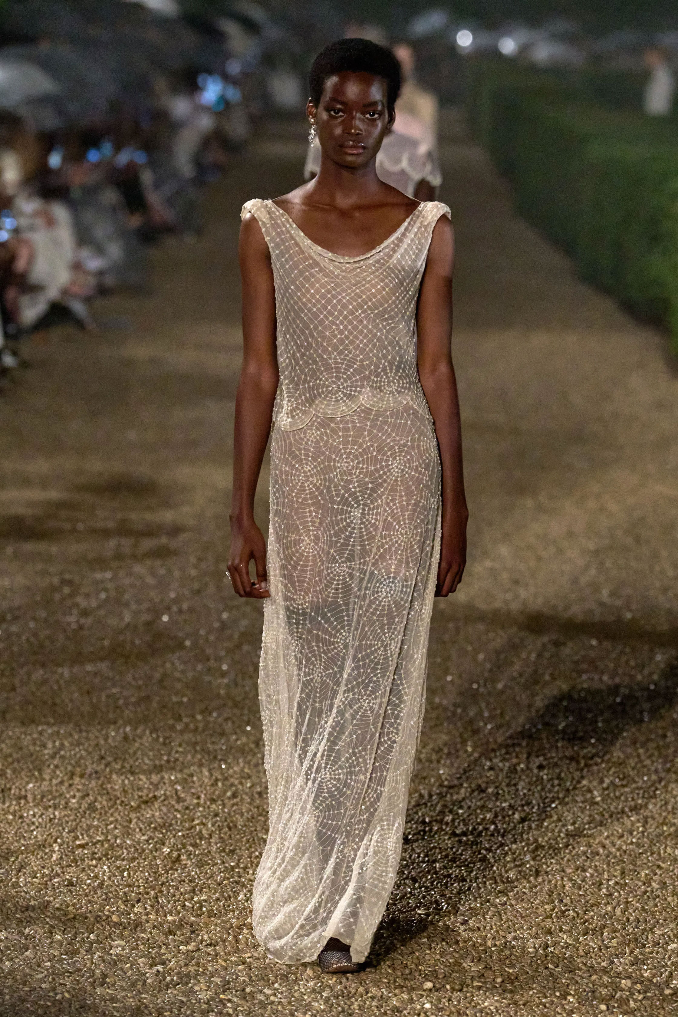 Показ колекції Dior пройшов у розкішних садах вілли Альбані, а дощ, який розпочався напередодні, додавав шоу особливої атмосфери. На створення образів resort – 2026 К’юрі надихнув роман La Bella Confusione італійського письменника Франческо Пікколо. Сюжет книги розгортається в 60-х роках та розповідає про один з найцікавіших періодів в історії кінематографу, а саме про зіткнення Федеріко Фелліні та Луккіно Вісконті в боротьбі за Золоту пальмову гілку Венеційського кінофестивалю.