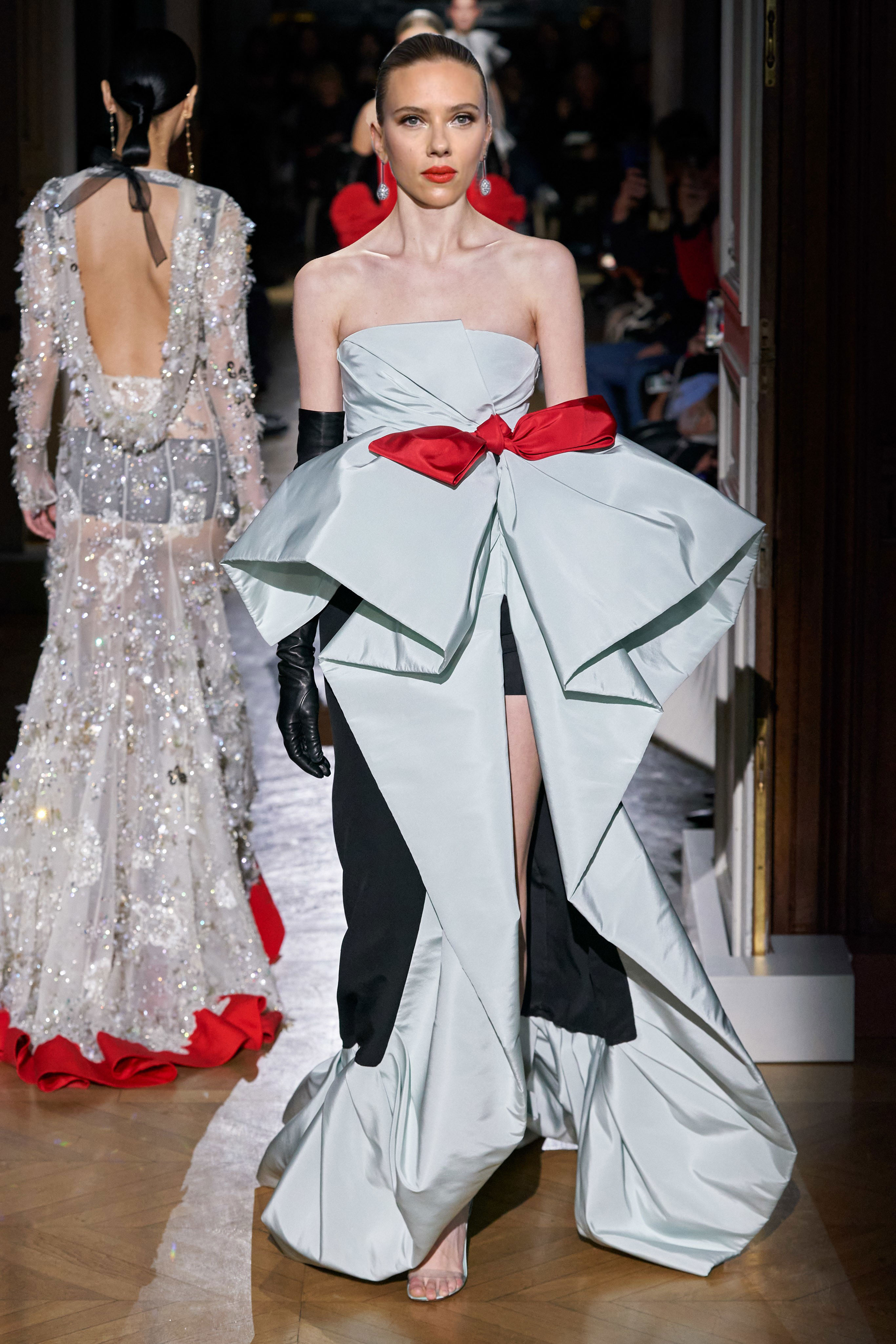 Скарлетт Йоханссон очень идут платья из тафты и шелка — это доказал еще Тим Уокер, снимая актрису в пышных нарядах из десятков метров ткани. Вот кому можно не бояться бантов и оборок.