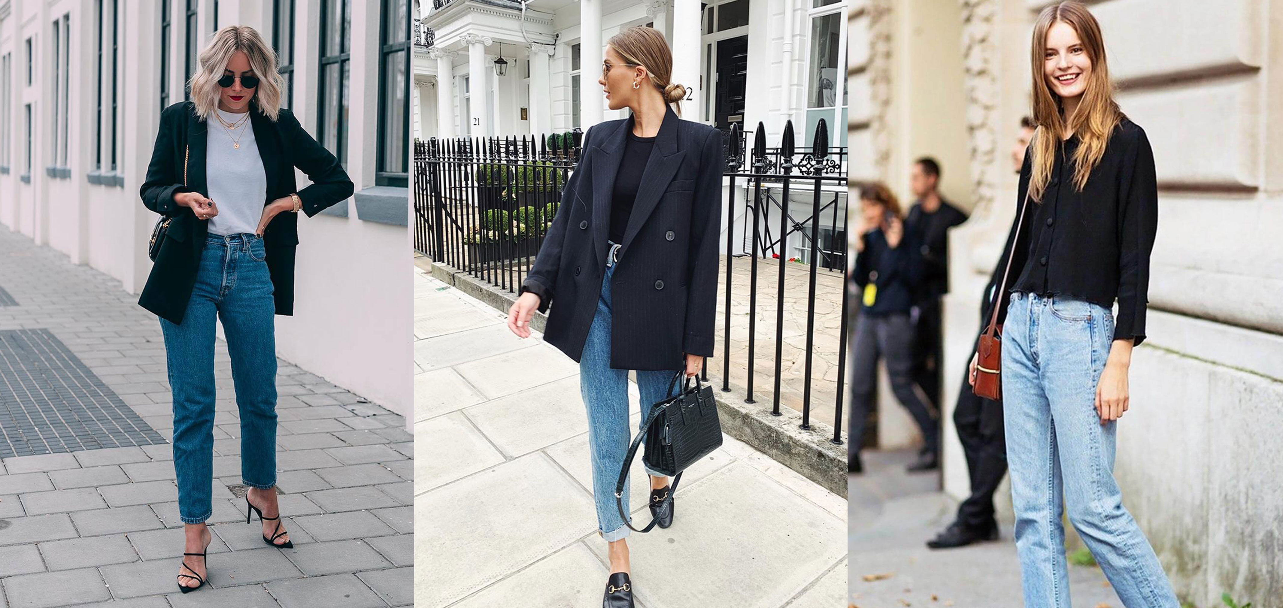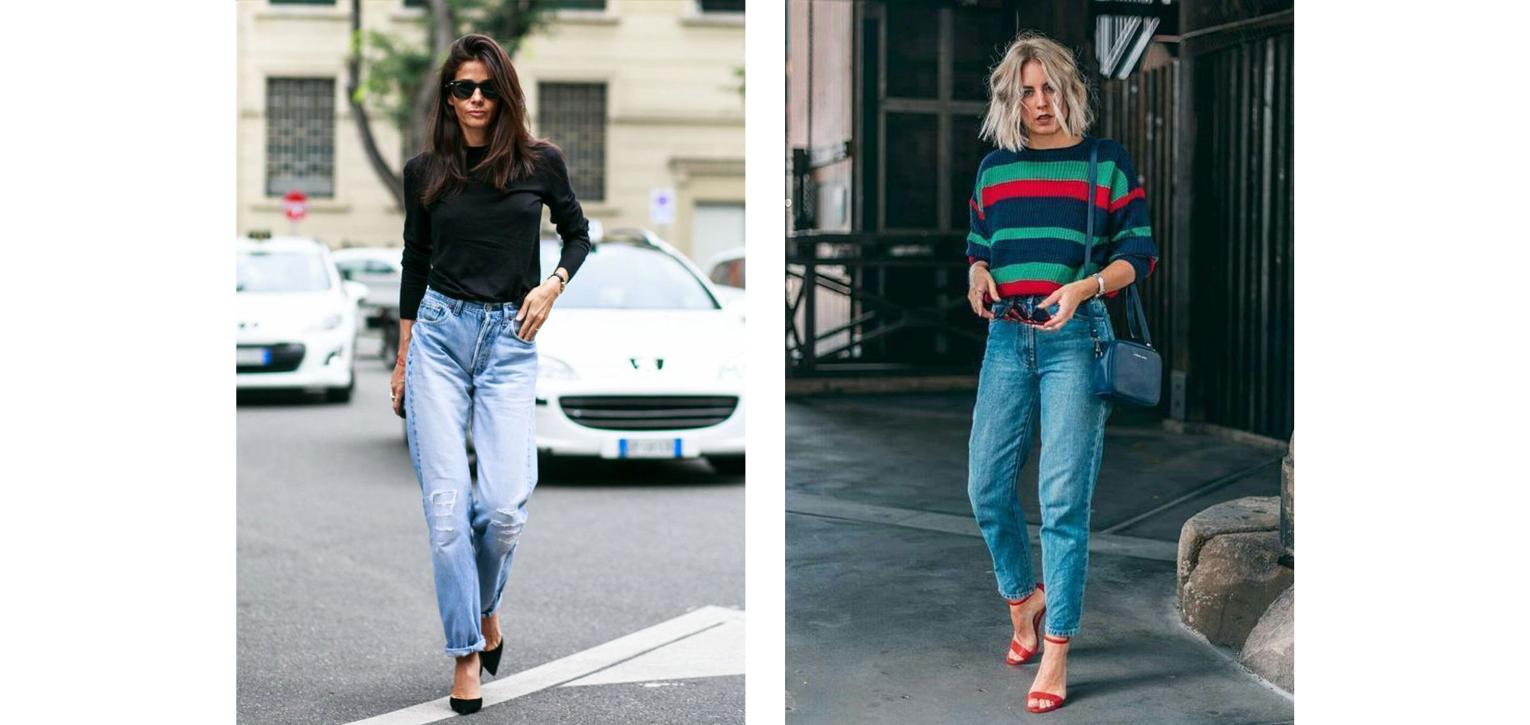 Приводим примеры наиболее популярных сочетаний разных моделей mom-джинсов. Стритстайл-звезды не ограничивают себя в выборе верха к этим джинсам, и мы советуем поступать так же. Трикотажная футболка вовсе не делает образ с такими джинсами слишком простым, если дополнить его босоножками на танкетке или сумкой на цепочке, а укороченный топ или топ на одно плечо сводит стиль mom-джинсов к роскошному минимализму 90-х. Непременно стоит попробовать носить прямые модели mom-джинсов с дендистскими блейзерами в клетку, как это делали модели на шоу Эди Слимана для Celine. Не стоит также упускать возможность почувствовать себя модным сорванцом, надев майку и подвязав джинсы кожаным мужским ремнем.