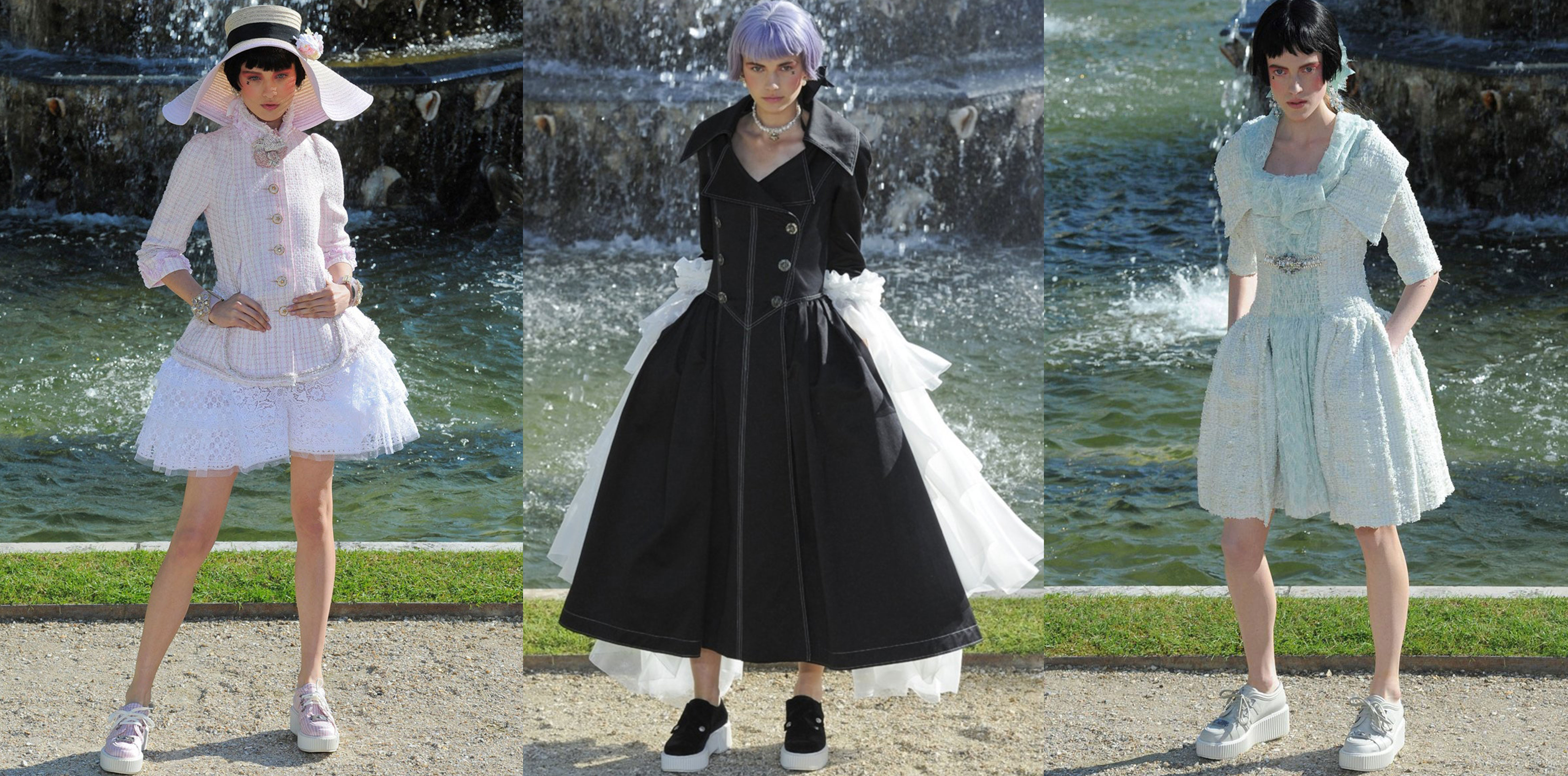 Тогда Карл снова поразил всех своей находчивостью и пригласил к фантазии на тему Версаля во времена социализма. Платья в духе Марии-Антуанетты из денима, соломенные шляпки с лентами, укороченные кюлоты и камзолы приобрели революционные оттенки в интерпретации кутюрье.