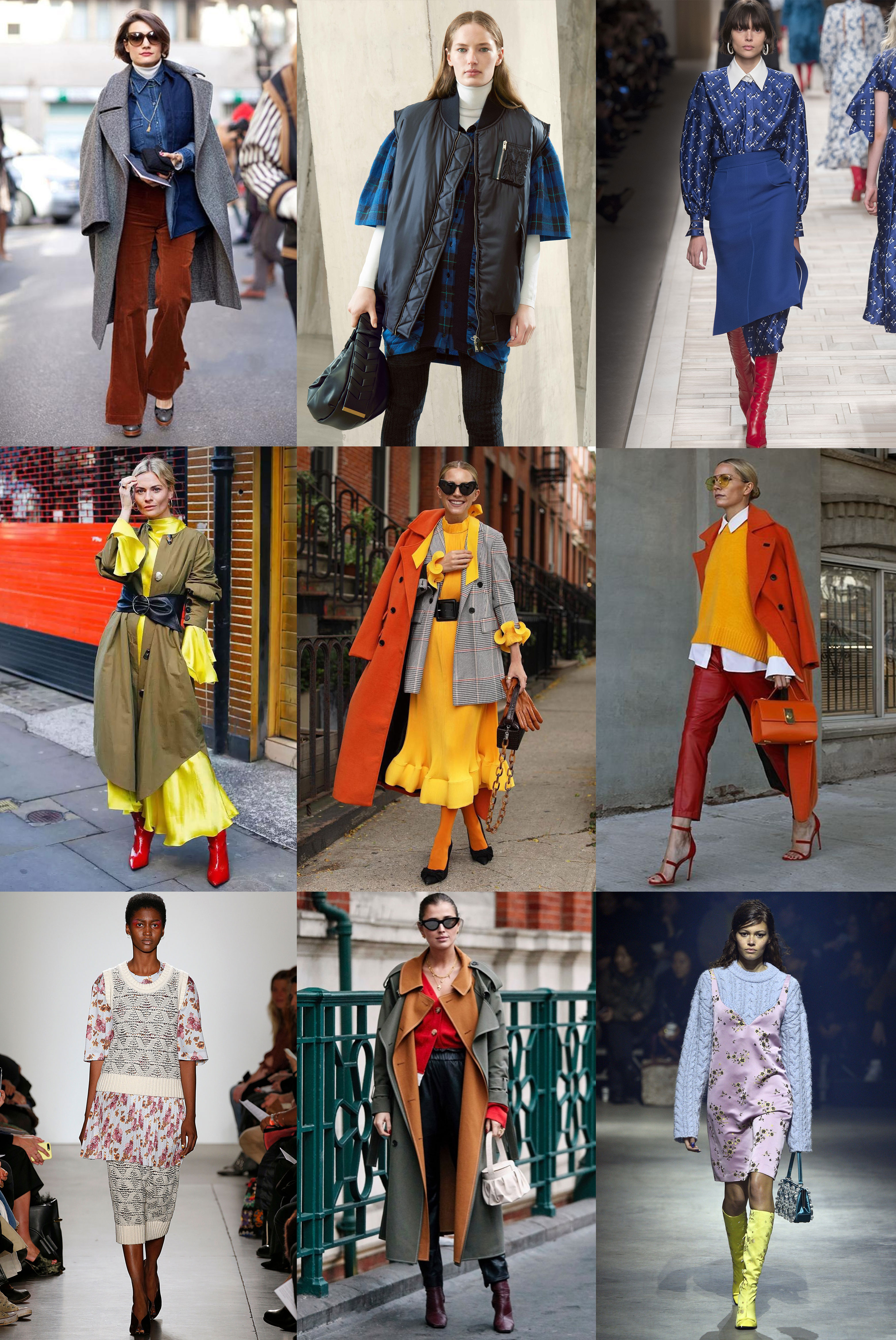 Среди самых популярных схем многослойного стиля — сочетания платья и брюк, укороченных бомберов и классических пальто, удлиненных рубашек и джемперов, сарафанов и свитеров. Эффектным приемом будет надеть юбку поверх платья, а на строгий жакет набросить яркое пальто, не забыв усилить образ платьем сочного оттенка. Ставший классическим, но всё такой же нетривиальный ход надеть два пальто сразу — идеальное решение, когда не получается определиться, какое нравится больше. Также одним из давних способов создать нескучный и при этом гармоничный многослойный образ — сочетать вещи из денима с классическими, как, например, джинсовые рубашки, надетые поверх топов и водолазок, и "разлетные" пальто.