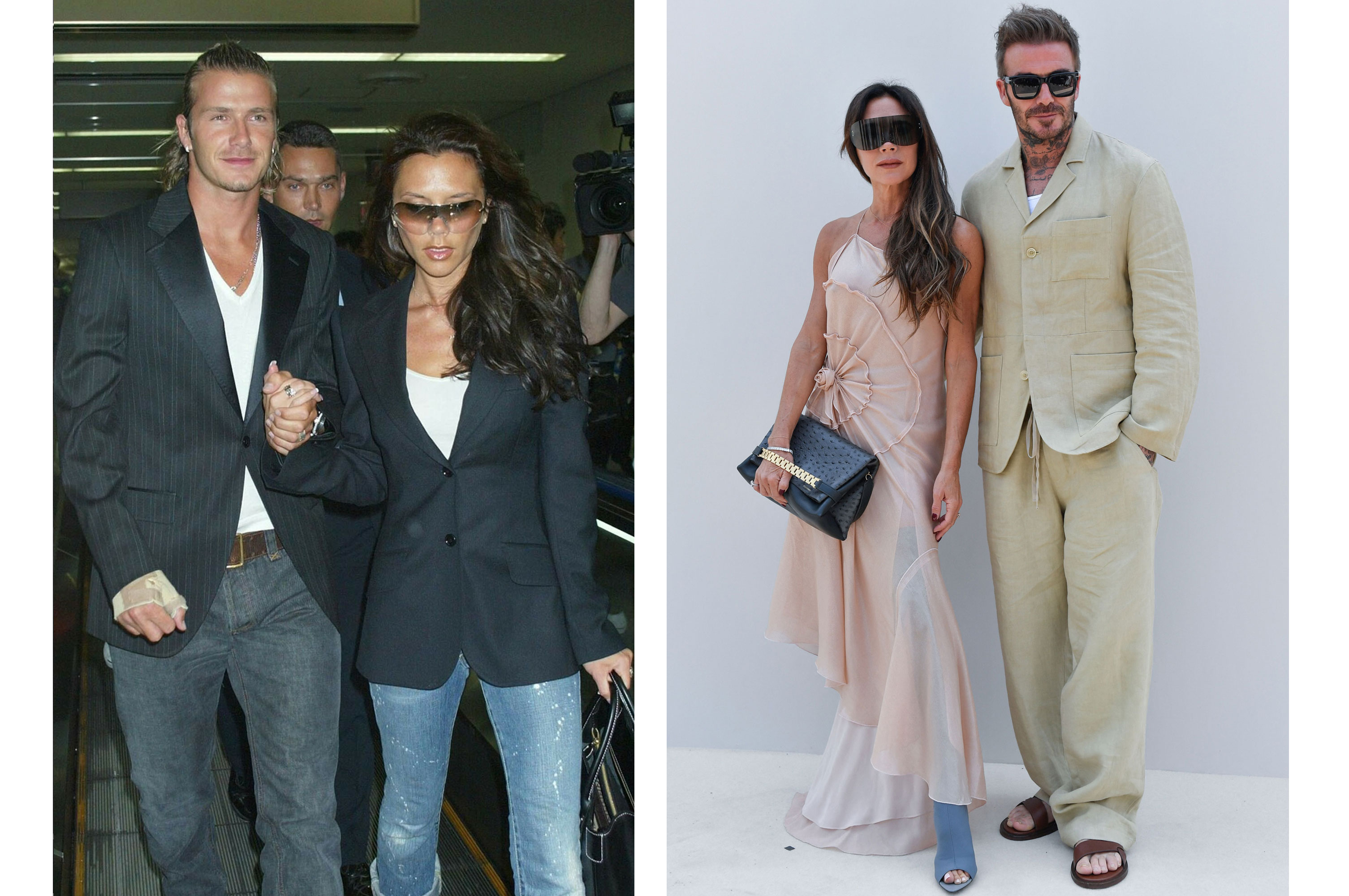 Девід та Вікторія Бекхем уже понад 28 років разом, і продовжують викликати світове захоплення завдяки своїм міцним стосункам та шляху, що вони пройшли разом. Пара познайомилася, коли футболіст грав у складі команди «Манчестер Юнайтед», а співачка й нині відома дизайнерка тоді входила до попгурту Spice Girls. Вони відомі своєю любов’ю до парних образів, з’явившись на власній весільній вечірці в іконічних фіолетових вбраннях від Antonio Berardi.