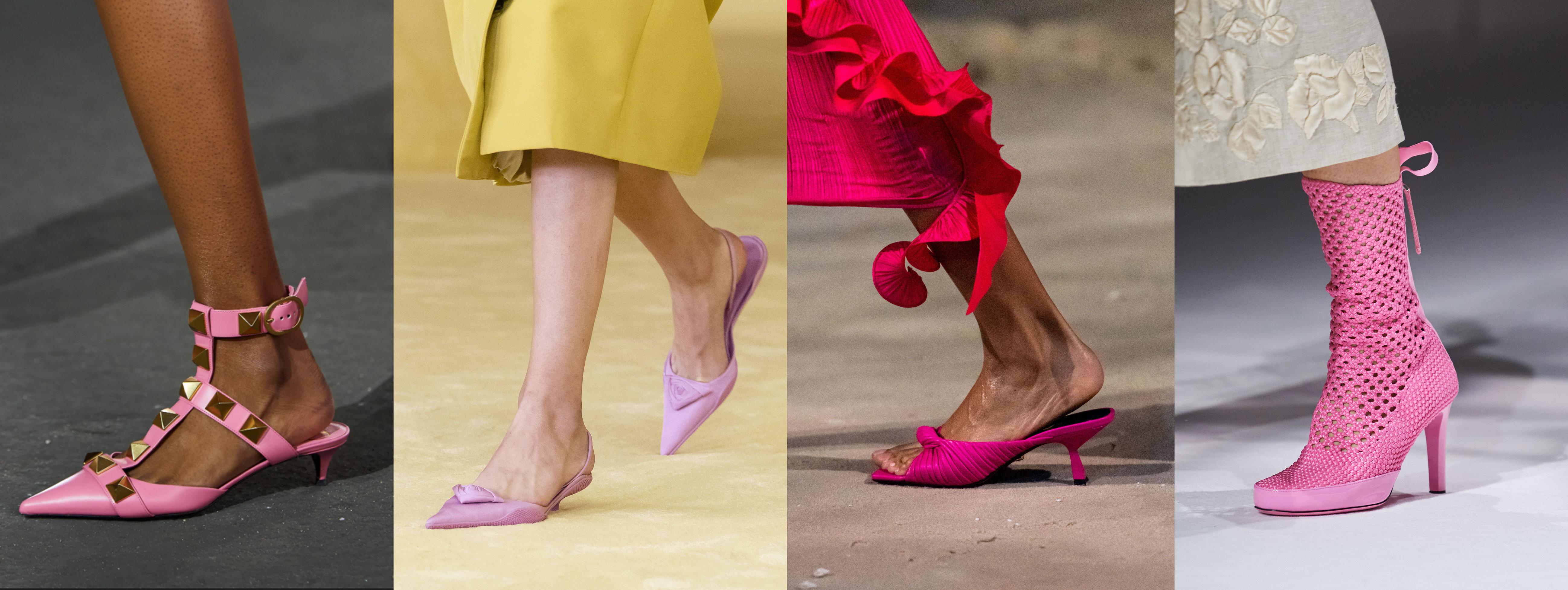 Этой весной, помимо главных обувных трендов, модные дома приготовили для нас кое-что совсем очаровательное. Versace, Louis Vuitton, Bottega Veneta, Valentino, Prada, Альбер Эльбаз в AZ factory и другие, будто сговорившись, представили в своих коллекциях обувь в оттенках розового. Остроносые и нарочито жеманные туфли на каблуках kitten heels, обтекаемые галоши, которым не страшны весенние ливни, ультрафутуристические ботильоны с разделенными пальцами — даже самые причудливые модели этого сезона нашли себя в области кокетливого и легкомысленного. Причем порция такой невинной сентиментальности совсем не помешает строгому, деловому или повседневному образу.