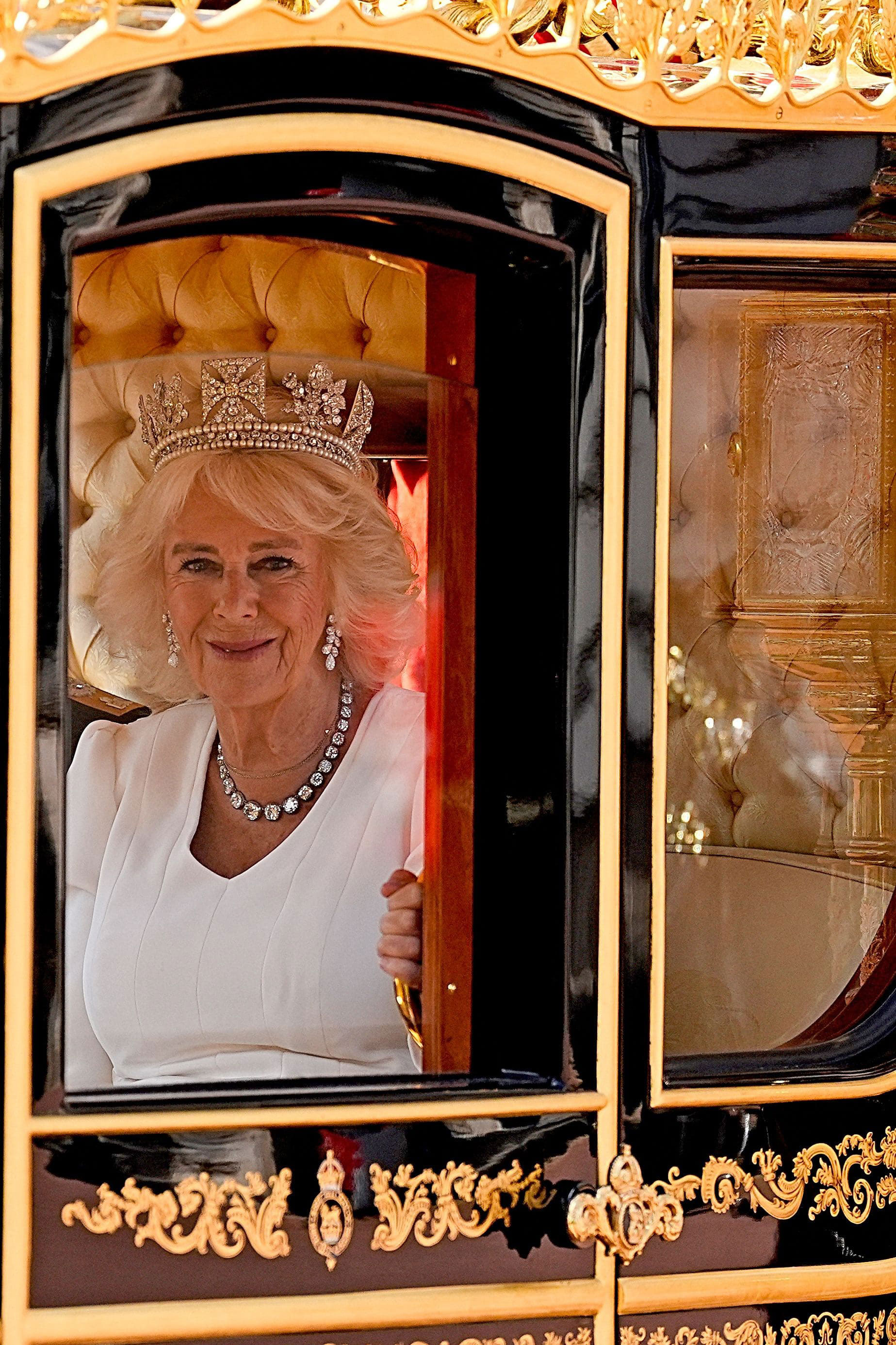 Для відкриття парламенту Камілла обрала державну діадему Георга IV, яка зазвичай використовується для коронації монарших. Її носили усі правлячі королеви Великобританії, починаючи з королеви Аделаїди. Діадема прикрашена 1333 діамантами загальною вагою 320 карат.