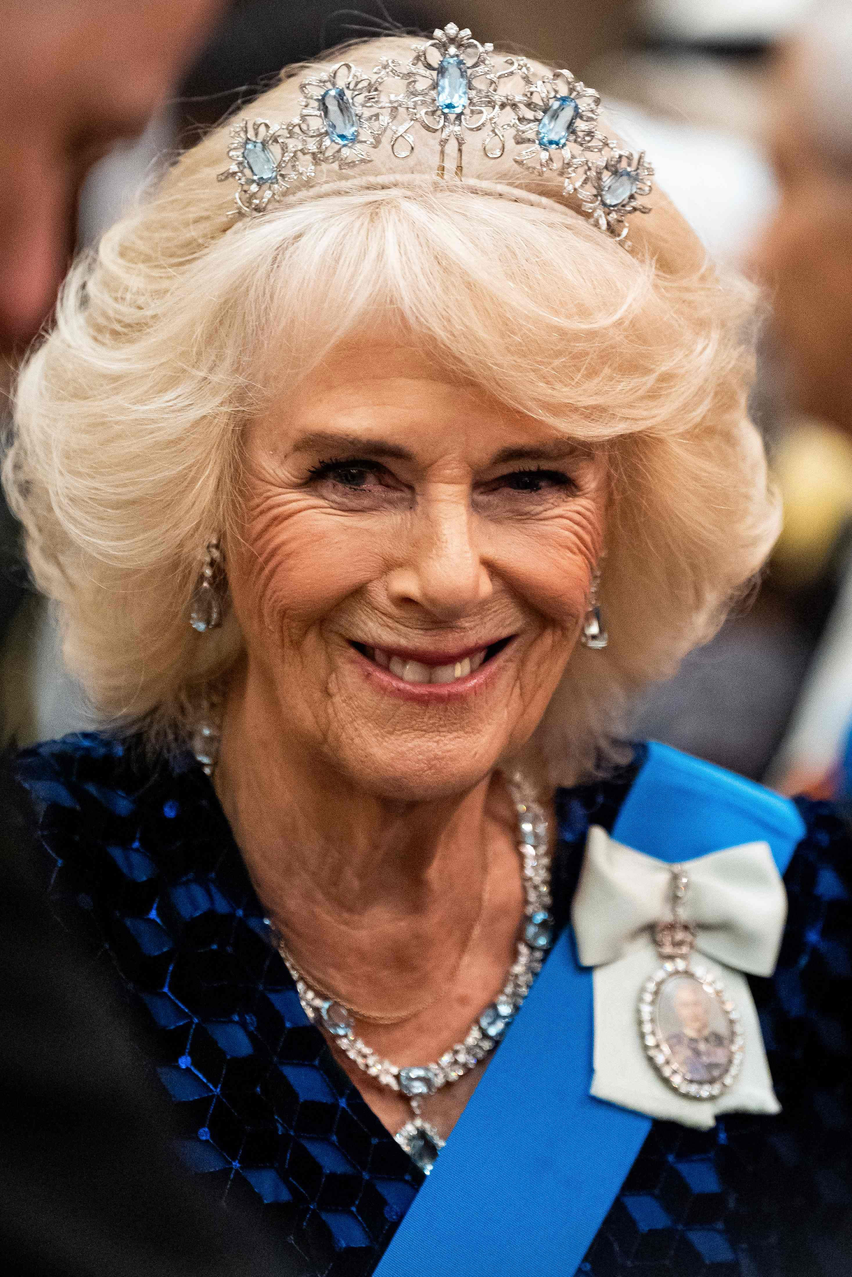Сапфіри — не єдина пристрасть. У 2024-му році Камілла вперше одягла аквамаринову тіару, створену для Єлизавети II. Її королева-консорт доповнила власними кольє та сережками, які також прикрашають об’ємні аквамарини.