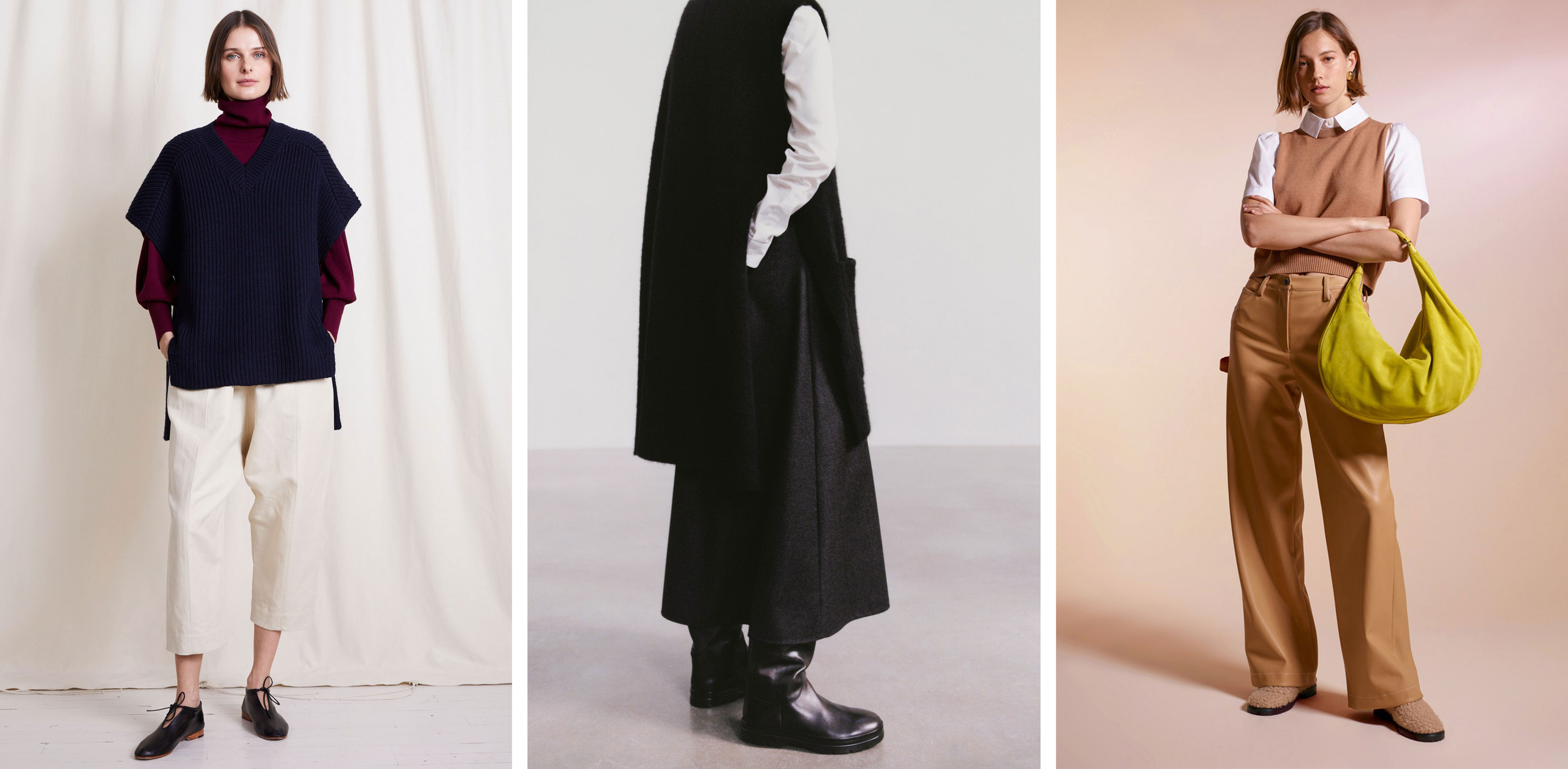 У Staud вся коллекция посвящена комфортному кэжуальному гардеробу, а The Row традиционно делают ставку на нескучный минимализм, предлагая носить удлиненный жилет поверх широких брюк и юбок миди.