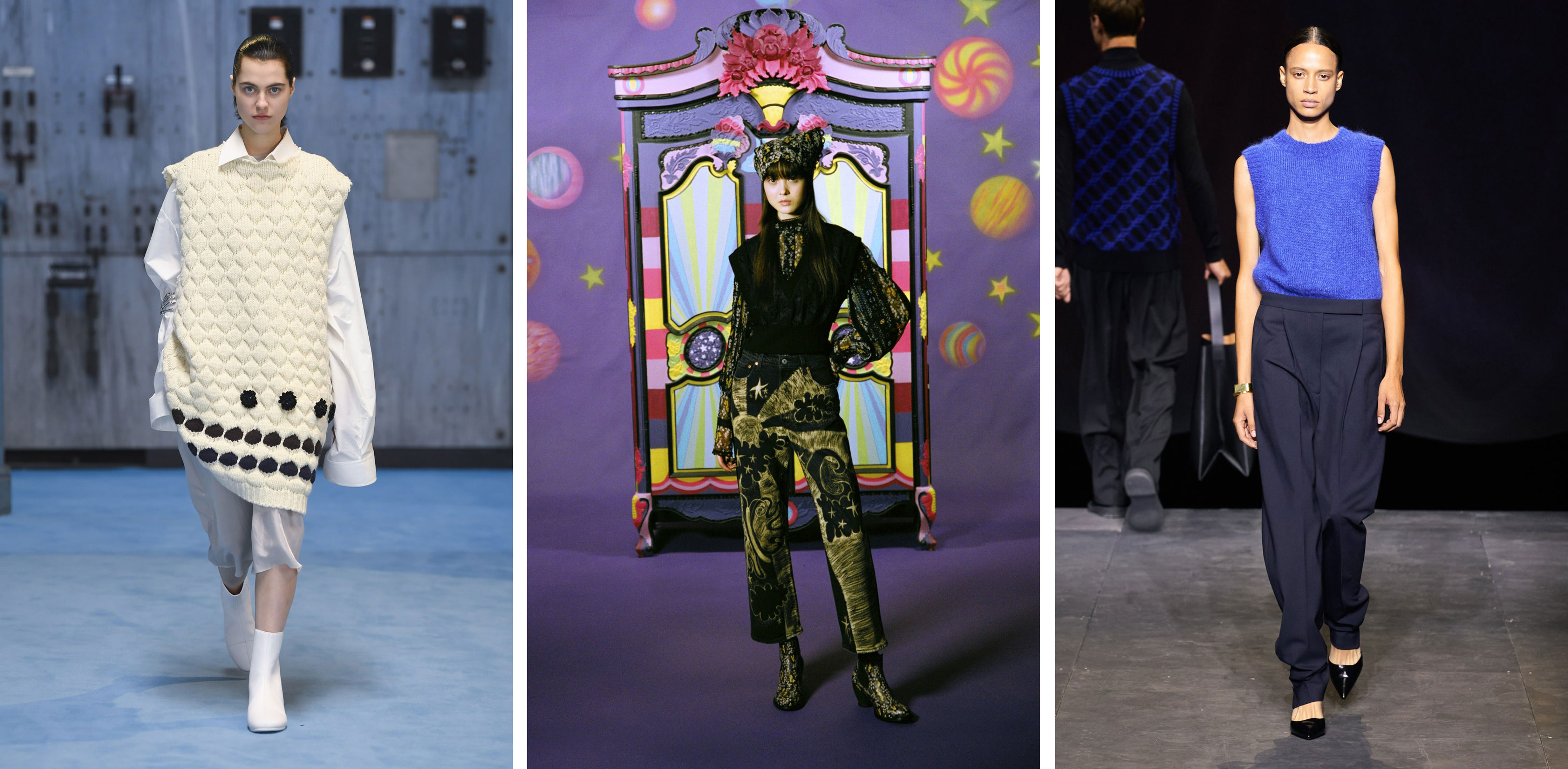 Дизайнеры на разные лады поют оду моде 70-х и 2000-х, то связывая подиум лоскутными одеялами и цветной пряжей, то заполняя бабочками, замшевыми сапогами и джинсами с люрексом. Одним из главных трендов осеннего сезона стал трикотажный жилет-свитер. Раф Симонс представил такой в крупной вязке, а Anna Sui сделали облегающим, дополнив блузу и джинсы в стиле gipsy.