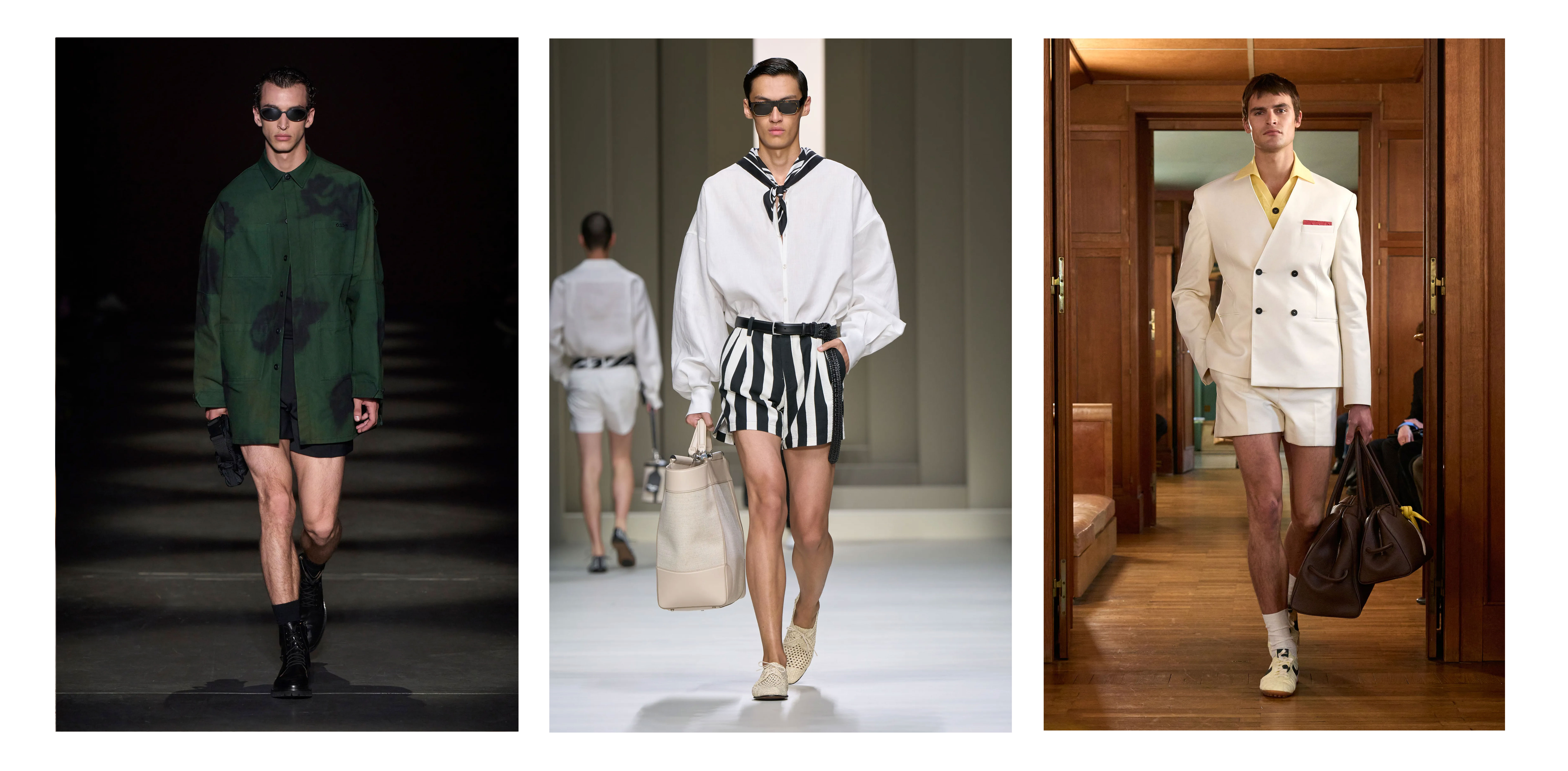 На подіумах сезону весна-літо 2025 коротких чоловічих шортів теж було чимало. Образи манекенників виводили цю річ за межі уніформи для спортзалу. Серед тих, хто показав моделі значно вище коліна, були Gucci, Jacquemus, Wales Bonner, Dolce & Gabbana, Bianca Saunders, 032c, Emporio Armani, JW Aanderson, Zegna й Martine Rose.