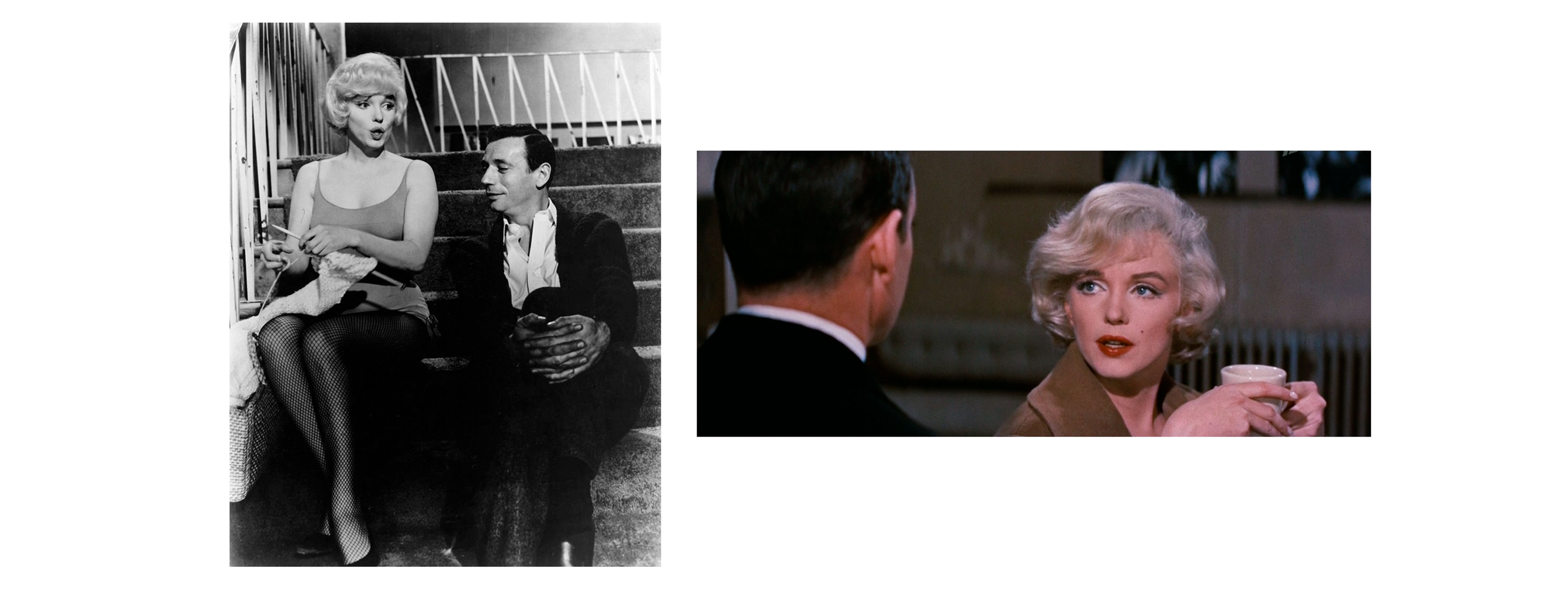 Одним из наиболее эффектных образов Мэрилин Монро стал молочный тренч, оттеняющий жемчужный блонд актрисы, и изящный черный берет. В таком виде Аманда совершенно серьезно и легко собиралась пробежаться от театра домой. Влюбленный по уши Жан-Марк, разумеется, трусил за нею.