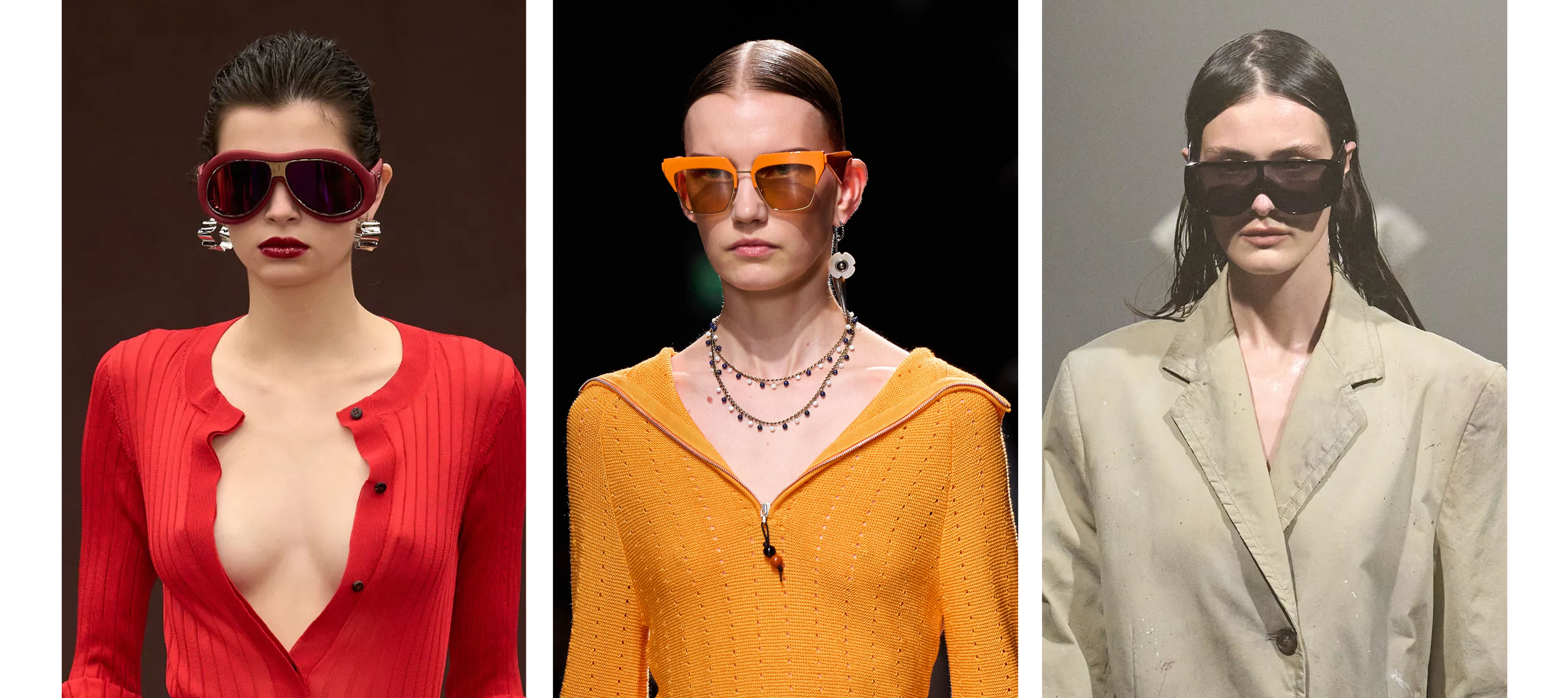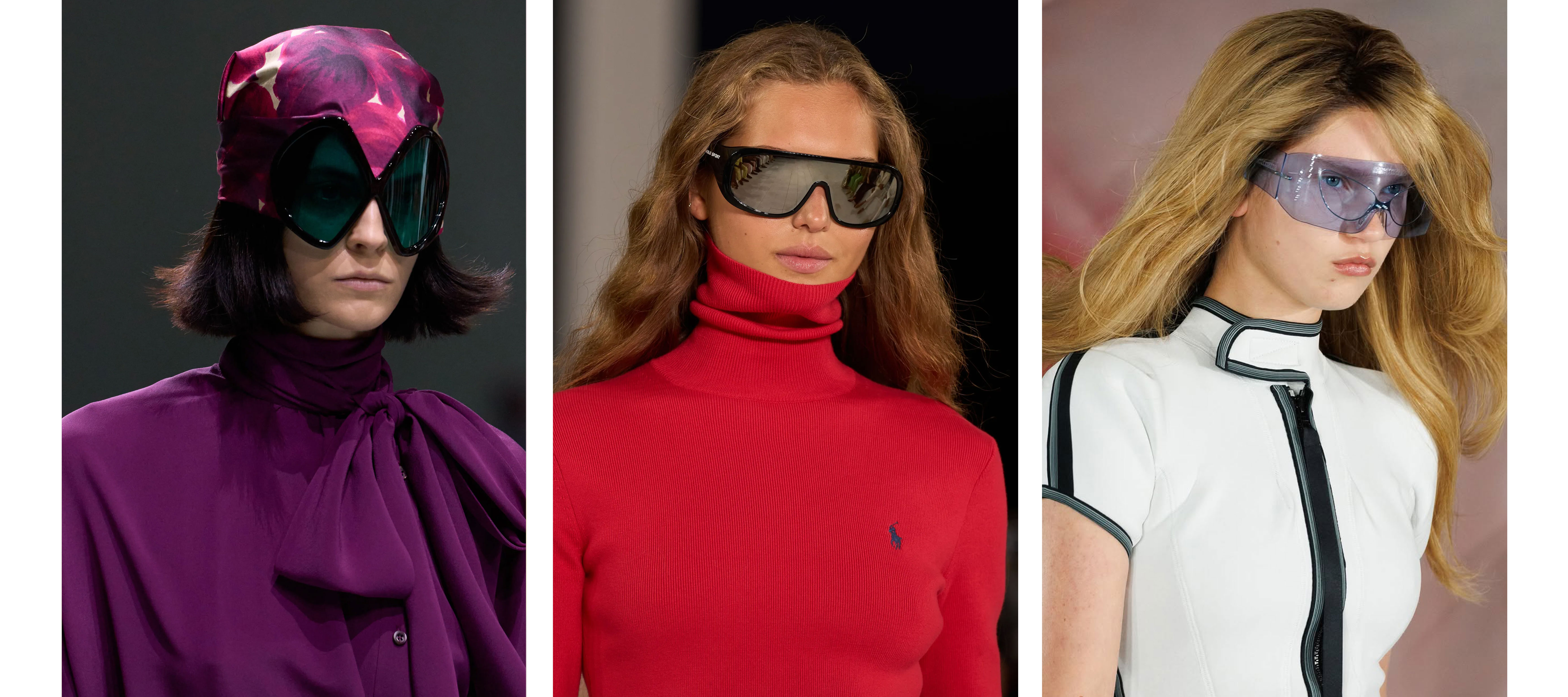 Футуристичні та маскоподібні, які походять зі спортивних діяльностей, ці моделі гарантують образу акцентність і драматичність. Запевнитися в такій оцінці можна з прикладами від Ralph Lauren, Prada й Ottolinger.