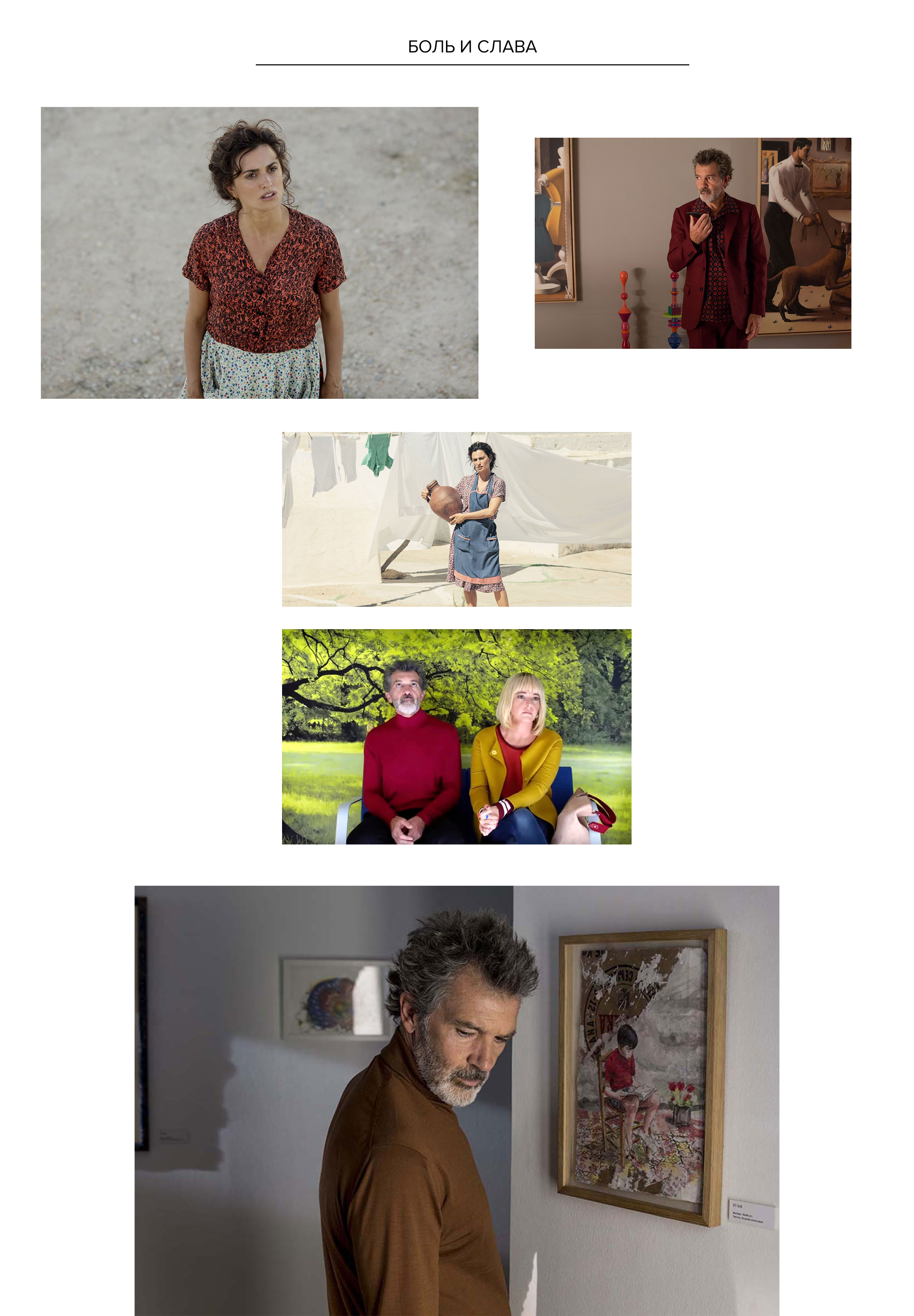 Наваристое волшебное зелье из ностальгии и сочного испанского колорита, помноженного на высокое чувство стиля Педро Альмодовара - так можно обозначить новый, и пожалуй, самый главный фильм режиссера "Боль и Слава". Любимые актеры Альмодовара Антонио Бандерас и Пенелопа Крус играют здесь жизнь самого Педро. Альмодовар вписывает в кинодействительность всё то, из чего состоят наши чувства и мы сами - контрасты, сочетание бытовой простоты и изысканных деталей. Вписанные в яркие узорчатые фактуры фигуры людей выглядят почти мифическими, а соседство геометрических форм с плавными флористическими орнаментами делает некоторые кадры гипнотическими.
