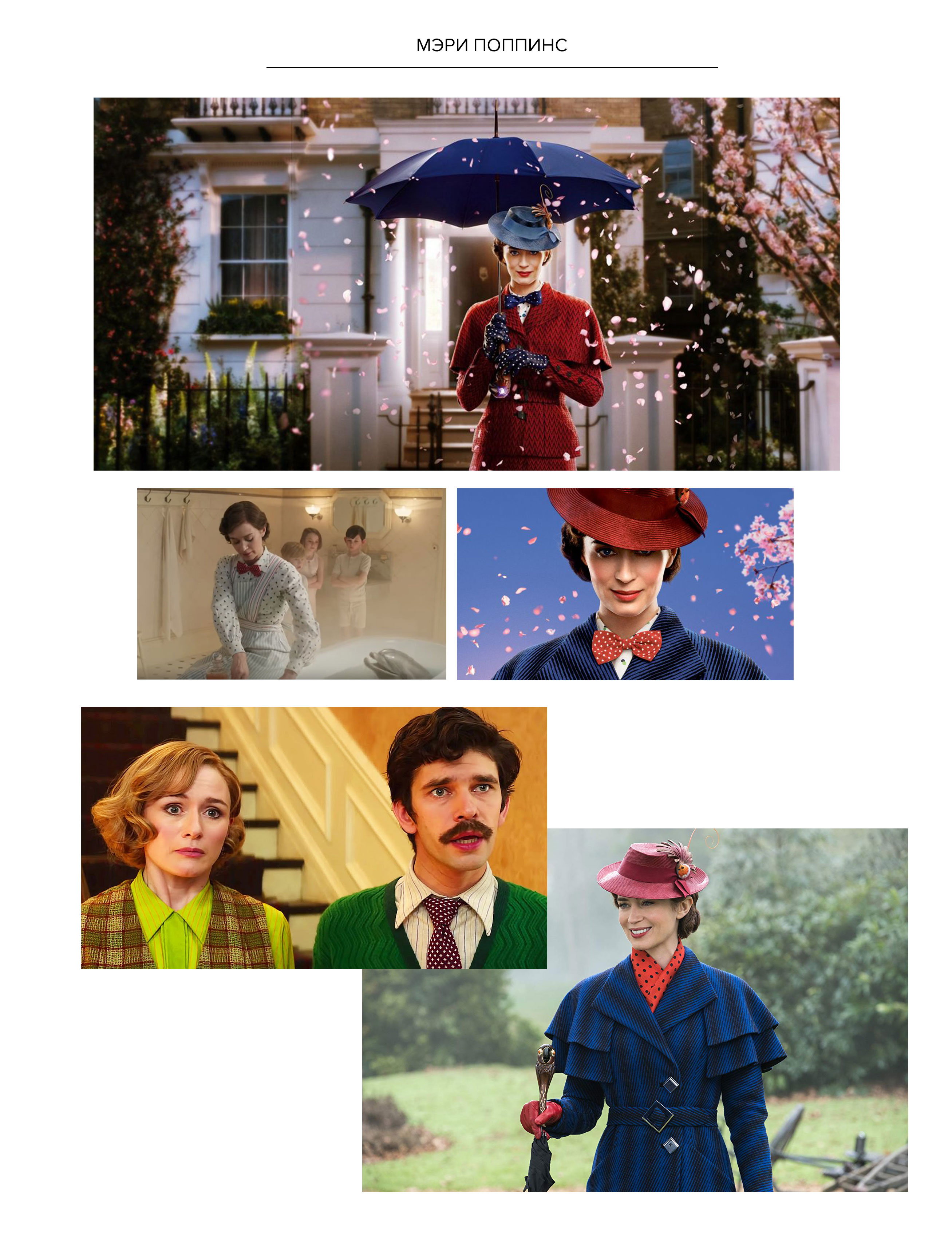 Оскароносная художница по костюмам и дизайнер Сэнди Пауэлл воссоздала винтажные образы Джули Эндрюс, исполнявшей роль няни-волшебницы в экранизации 1964 года, переиграв их в более чистые и зрелищные силуэты. Утонченная женственность 30-х, с кокетливыми блузами в горошек, платьями миди, замысловатыми шляпками и верхней одеждой, отсылающей к романтизму 19 века, — фильм Роба Маршалла с Эмили Блант в главной роли вдохновит вас и наполнит ощущением сказки.