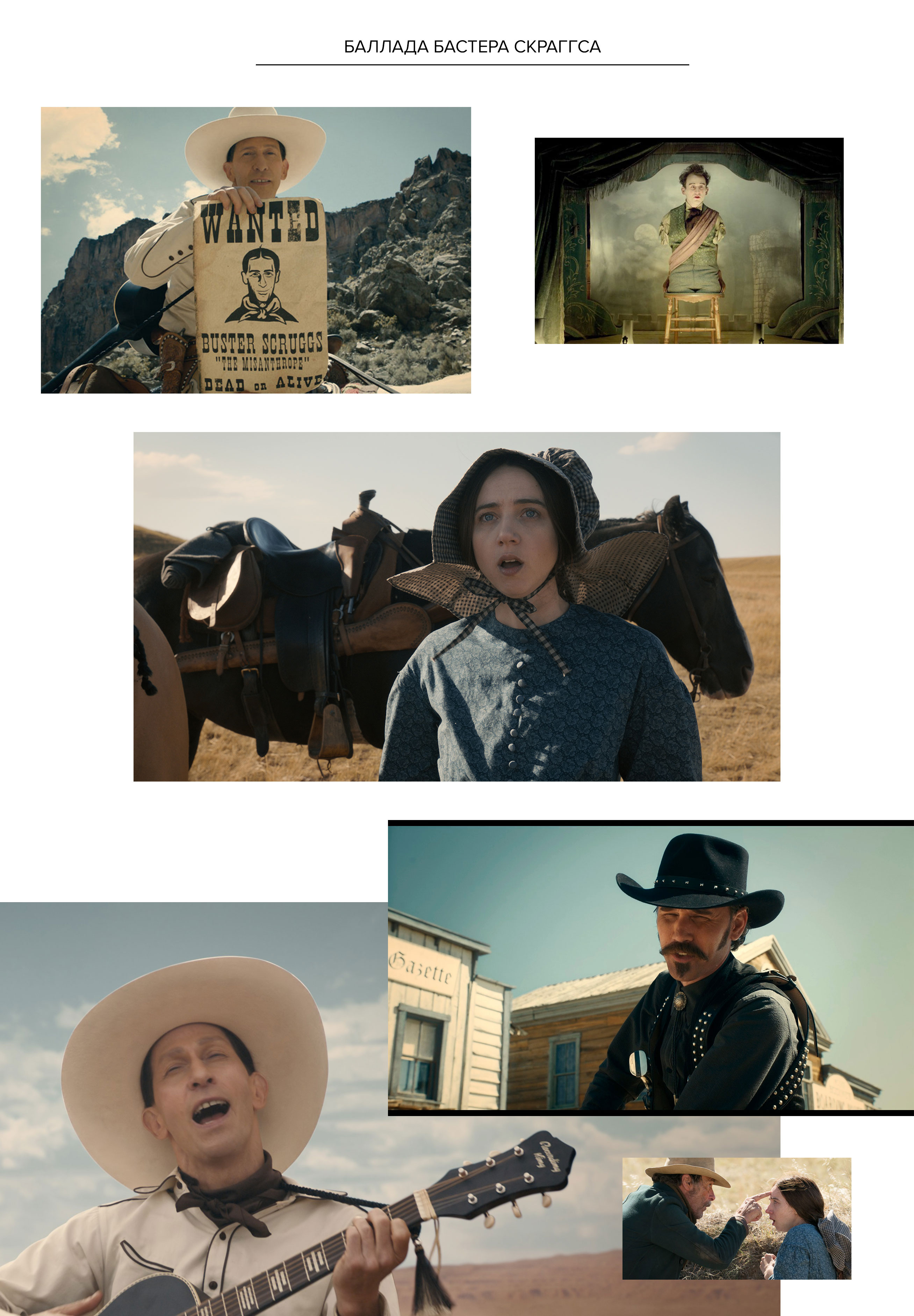 Братья Коэн, будучи почтенными режиссерами в возрасте, взяли да и сняли сказку о Диком Западе. Шесть поучительных, интересных и жутковатых историй повествуют о самых разных персонажах — героях и злодеях или обыкновенных людях, а их внешний вид — работа художника Мэри Зофрис, отвечавшей также за костюмы в фильмах "Интерстеллар" и "Ла-Ла-Лэнд". Самый нарядный и главный образ фильма — белый костюм с широкополой шляпой самого Бастера Скраггса — такой естественной роскоши и эксцентрике стоит поучиться многим.