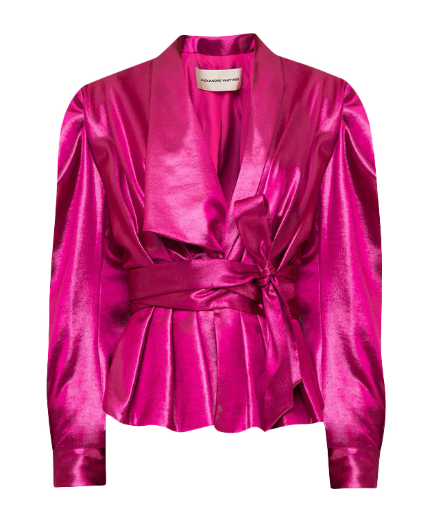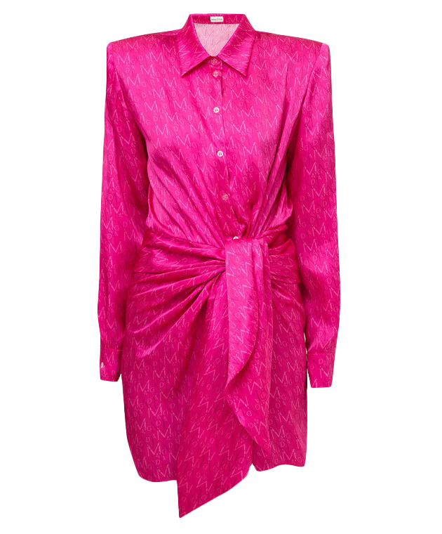 Бренд Magda Butrym знает толк в нетривиальной роскоши. Ультрамодная фуксия и длина мини уравновешены геометричной линией плеча, а драпировка придает платью оттенок клубного шика 2000-х.