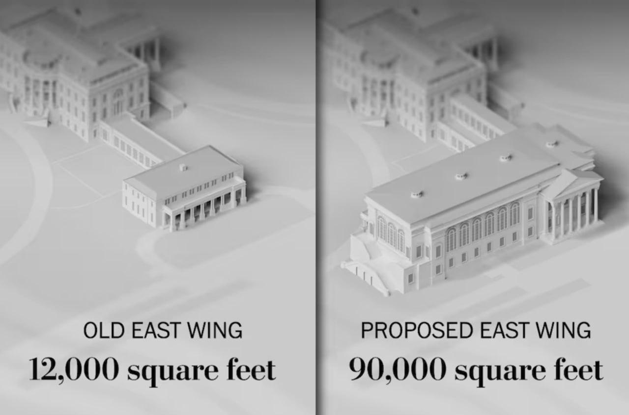 У Вашингтоні стартувало будівництво нового бального залу в Білому домі. Його площа буде майже вдвічі більшою, ніж в основній частині резиденції президента США. Нове приміщення зведуть на місці колишнього Східного флігеля, де раніше розміщувалися офіси першої леді, кінотеатр Білого дому, а також головний вхід для відвідувачів і туристів.