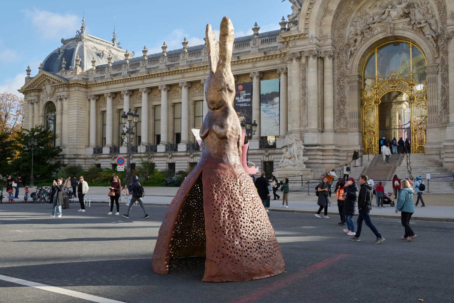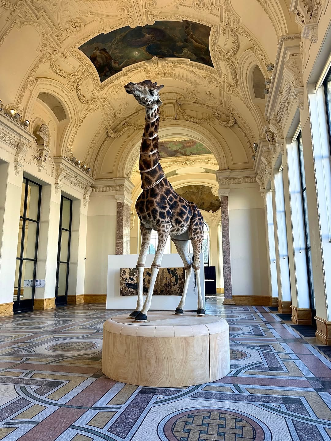 У Петі-Пале Юліус фон Бісмарк представив інсталяцію The Elephant in the Room (2023) — діалог між історією та пам’яттю. Таксидермована жирафа стоїть поруч із копією кінної статуї Отто фон Бісмарка, нагадуючи про колоніальну спадщину Німеччини та мовчазні символи влади, що досі зберігають свій монументальний спокій.
