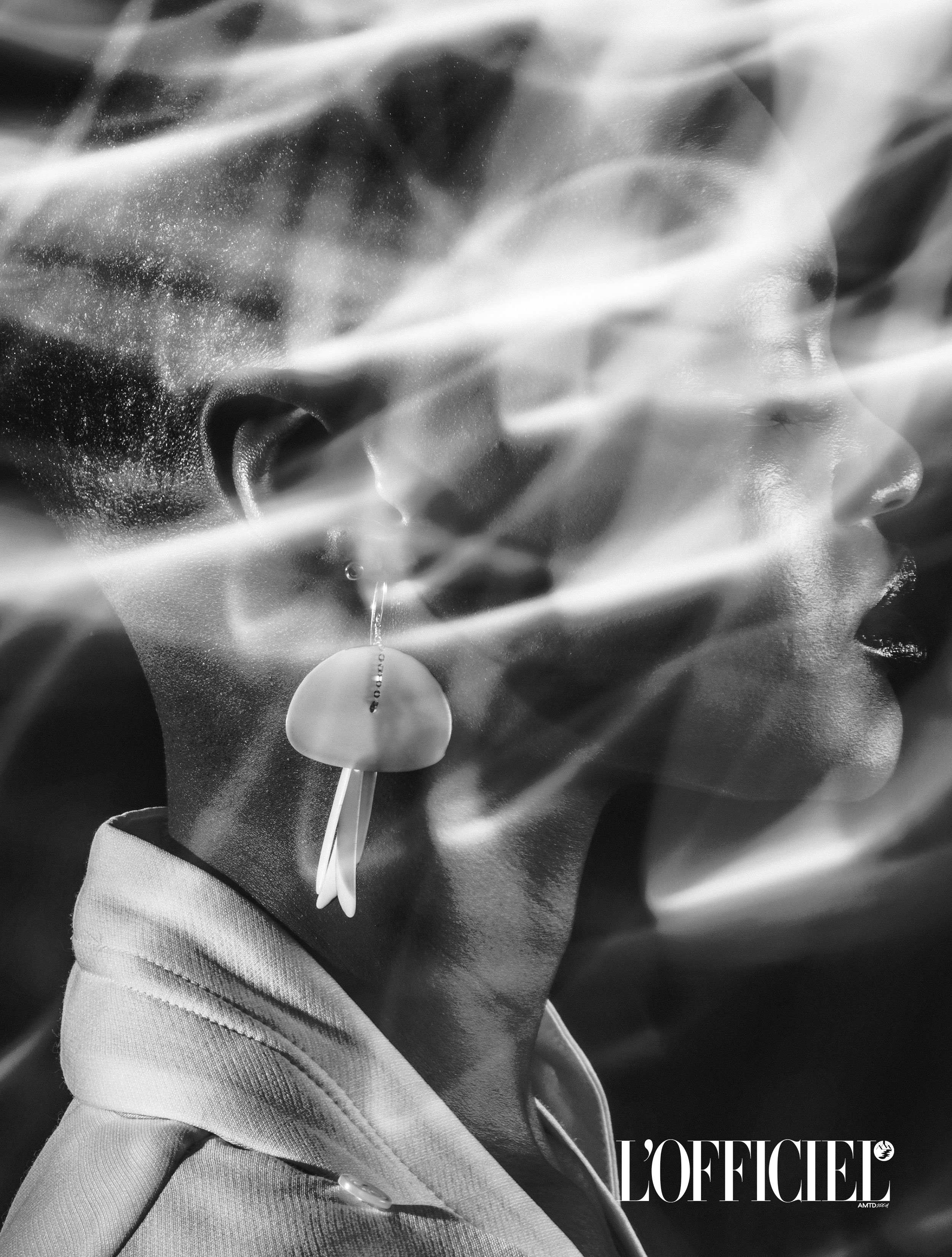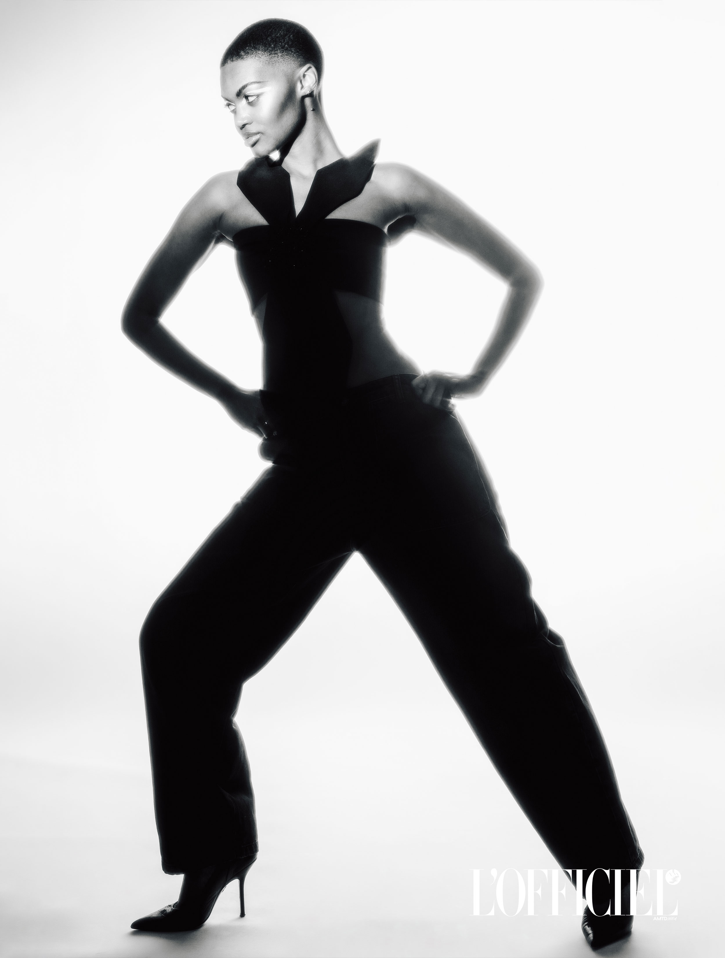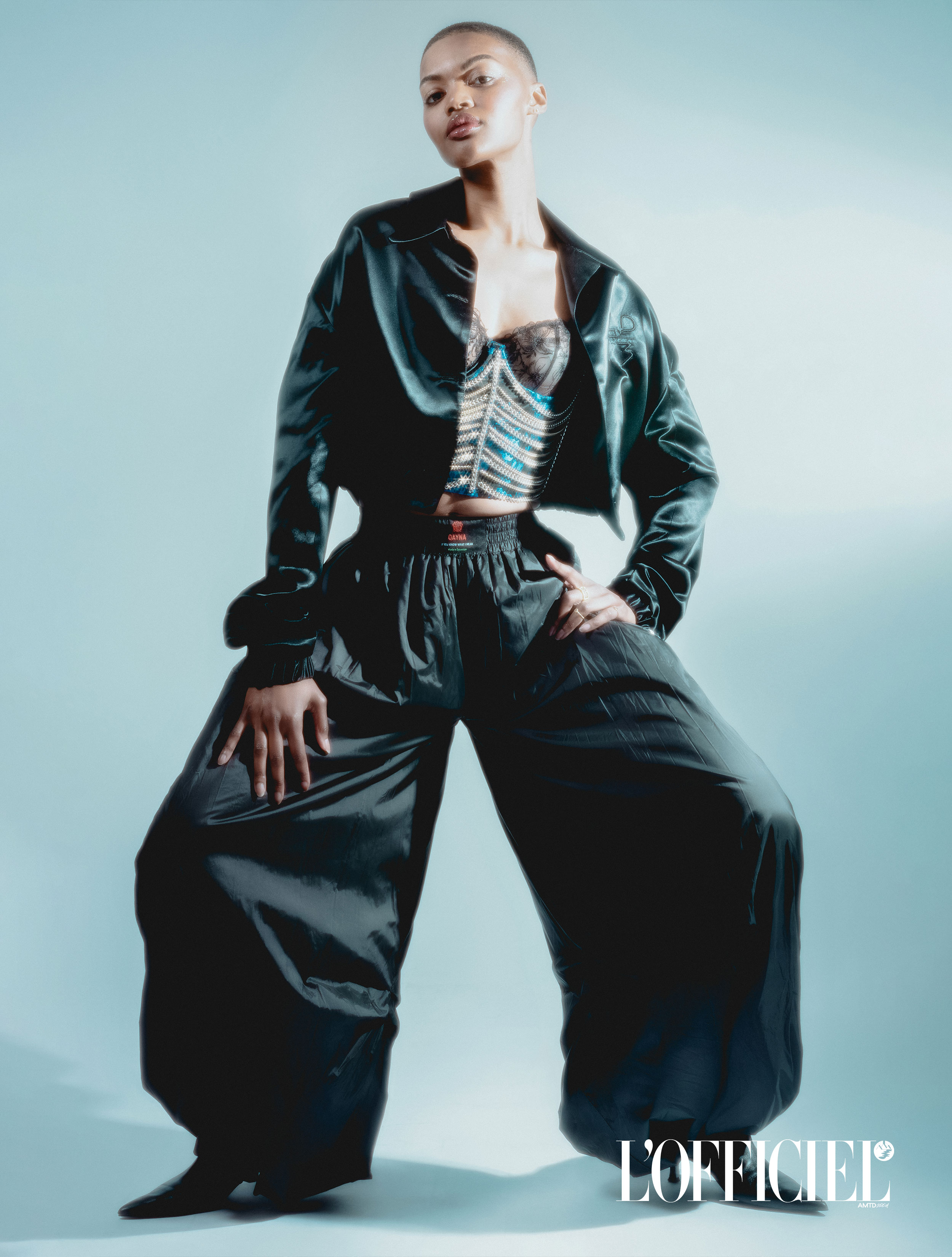 Crop Jacket: LD13 @ld13.official. Bra: ENERJI LONDON @enerjilondon. Corset: LORENA CORDERO @lorenacorderocoutureofficial. Pants: QAYNA @qayna.ru. Ring Band: VANIMY @vanimyjewelry. Knuckle Rings: YOUNG BY DILYS’ @youngbydilys. Shoes: ATANA @houseofatana