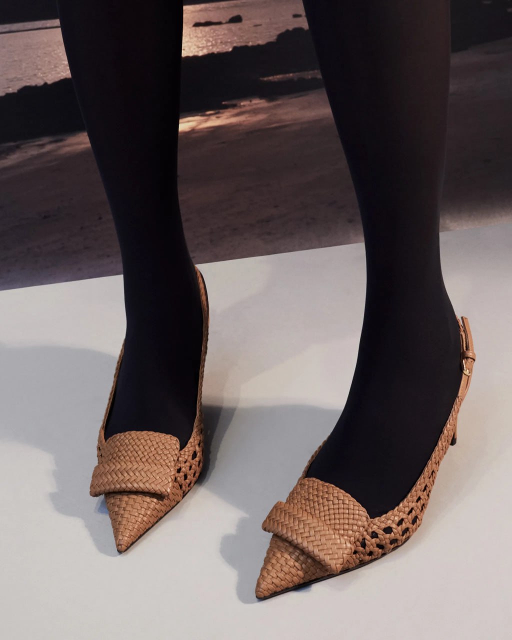 У новій лінії Ендрю також переосмислив архіви Дому, включивши моделі з плетеними деталями та класичні слингбеки, надаючи їм сучасного і водночас елегантного звучання.