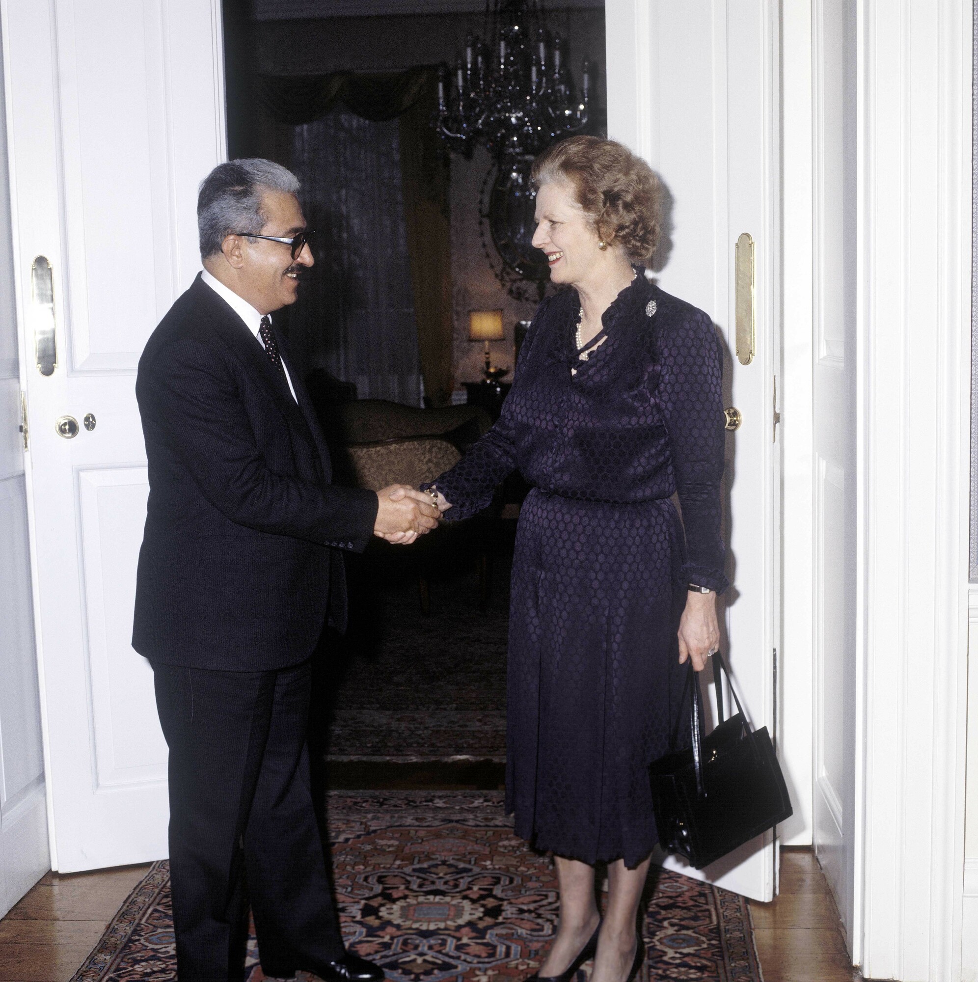 Маргарет Тетчер і тодішній міністр закордонних справ Іраку Тарік Азіз, 1985 рік