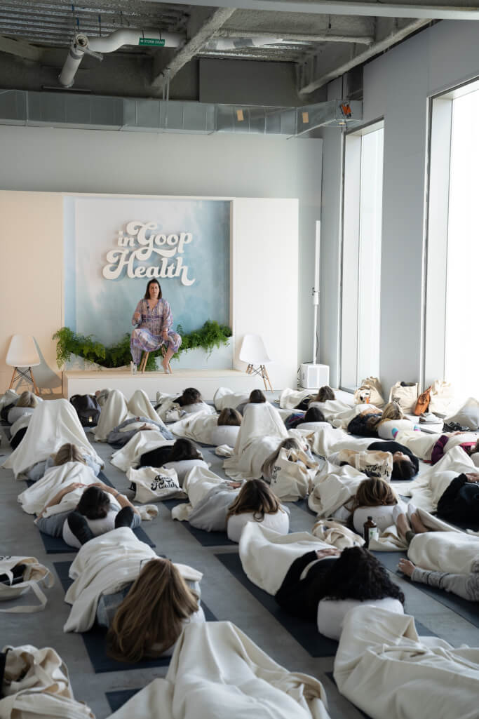 Гвинет Пэлтроу позаботилась о своих единомышленниках и устроила “прибежище для сна” — огромную кровать, на которой все желающие могли отдохнуть в перерыве между приемом кетамина и общением с духами.