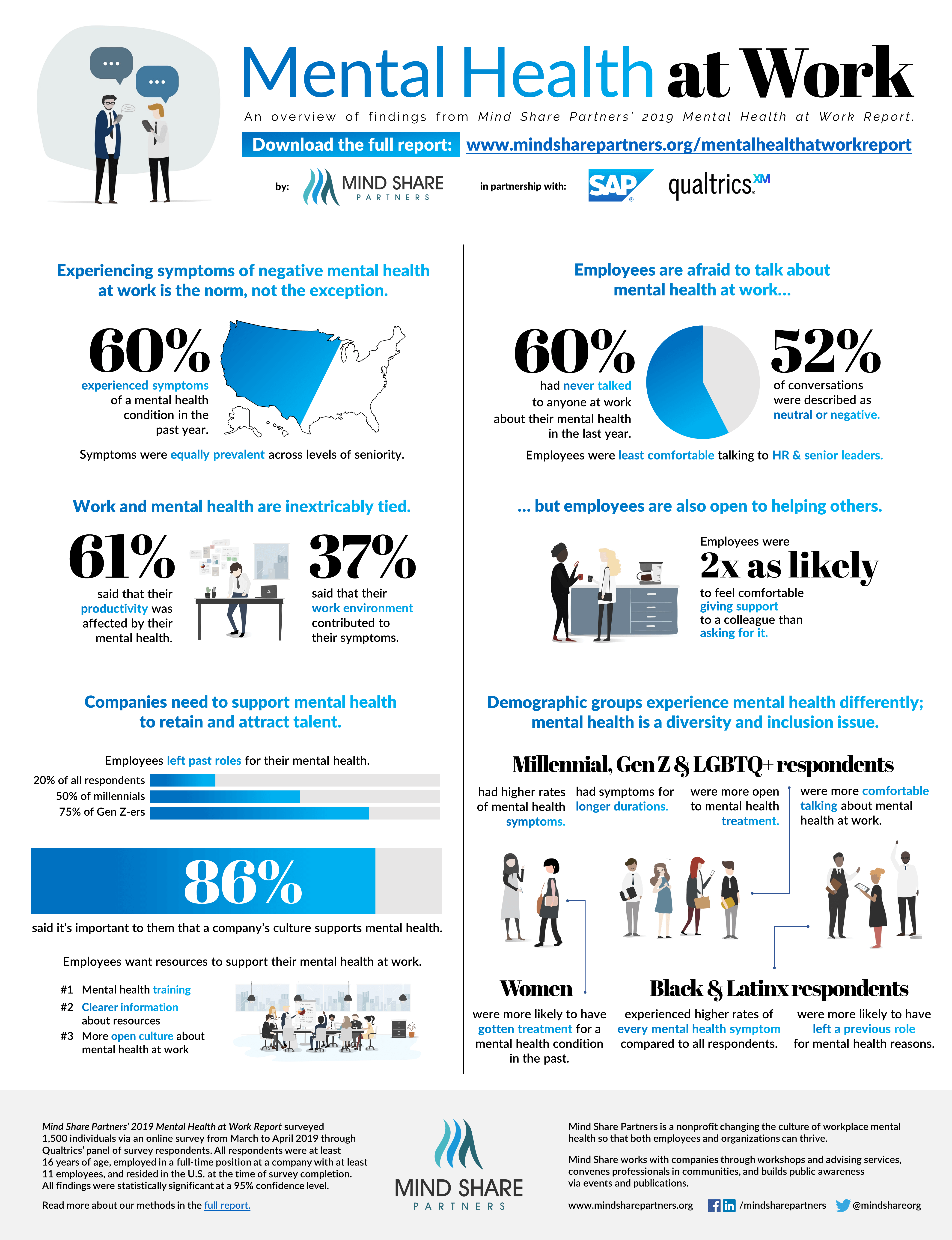 По результатам опроса американского центра Mind Share Partners выяснилось, что около 50% миллениалов (23-38 лет) и 75% центениалов (18-22 года) хотя бы раз в жизни увольнялись с работы из-за стресса или других психологических причин. Целью опроса была тема “как работа влияет на психическое здоровье”. Всего в опросе приняло участие 1500 работников в возрасте от 16 лет.