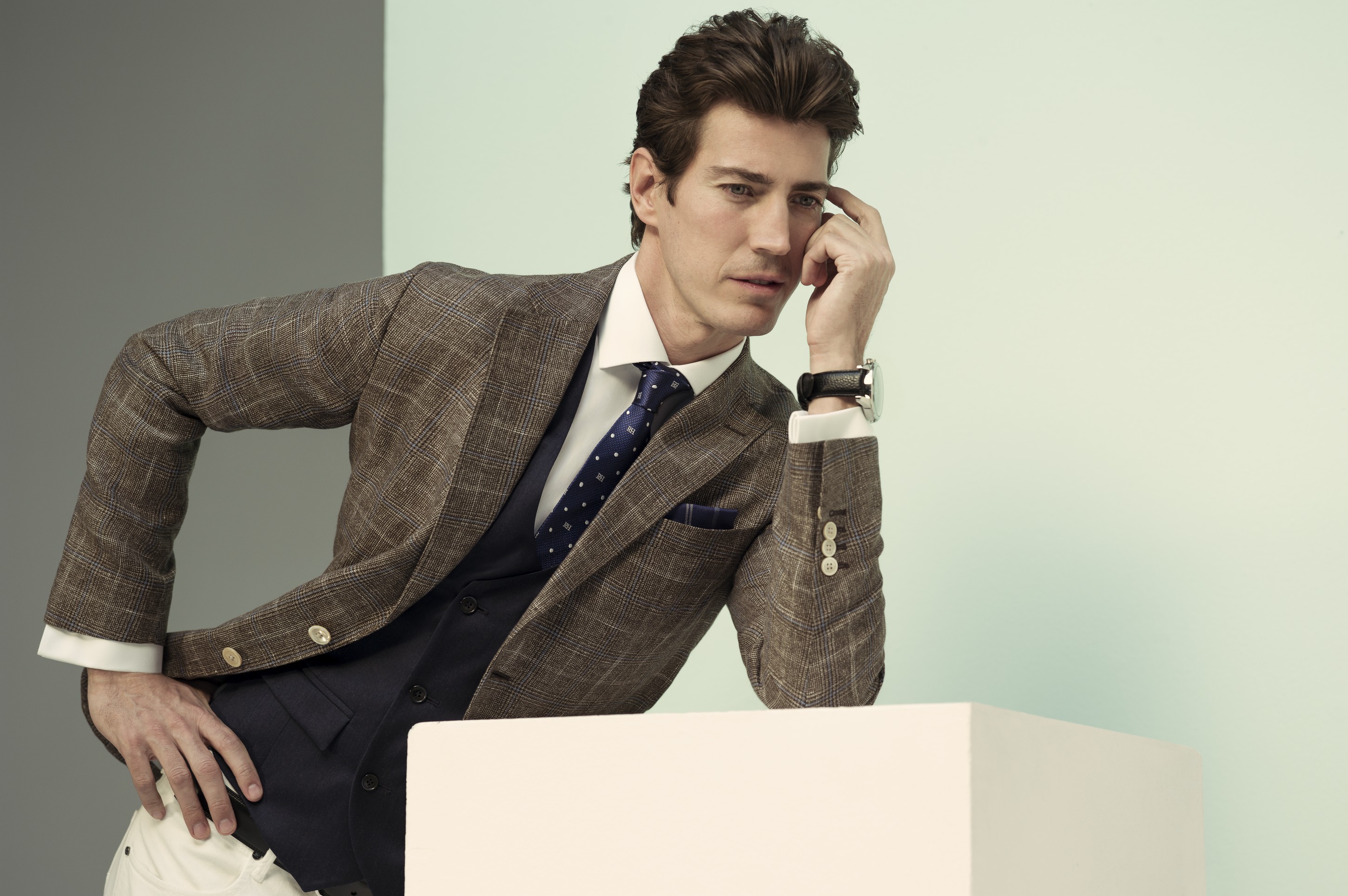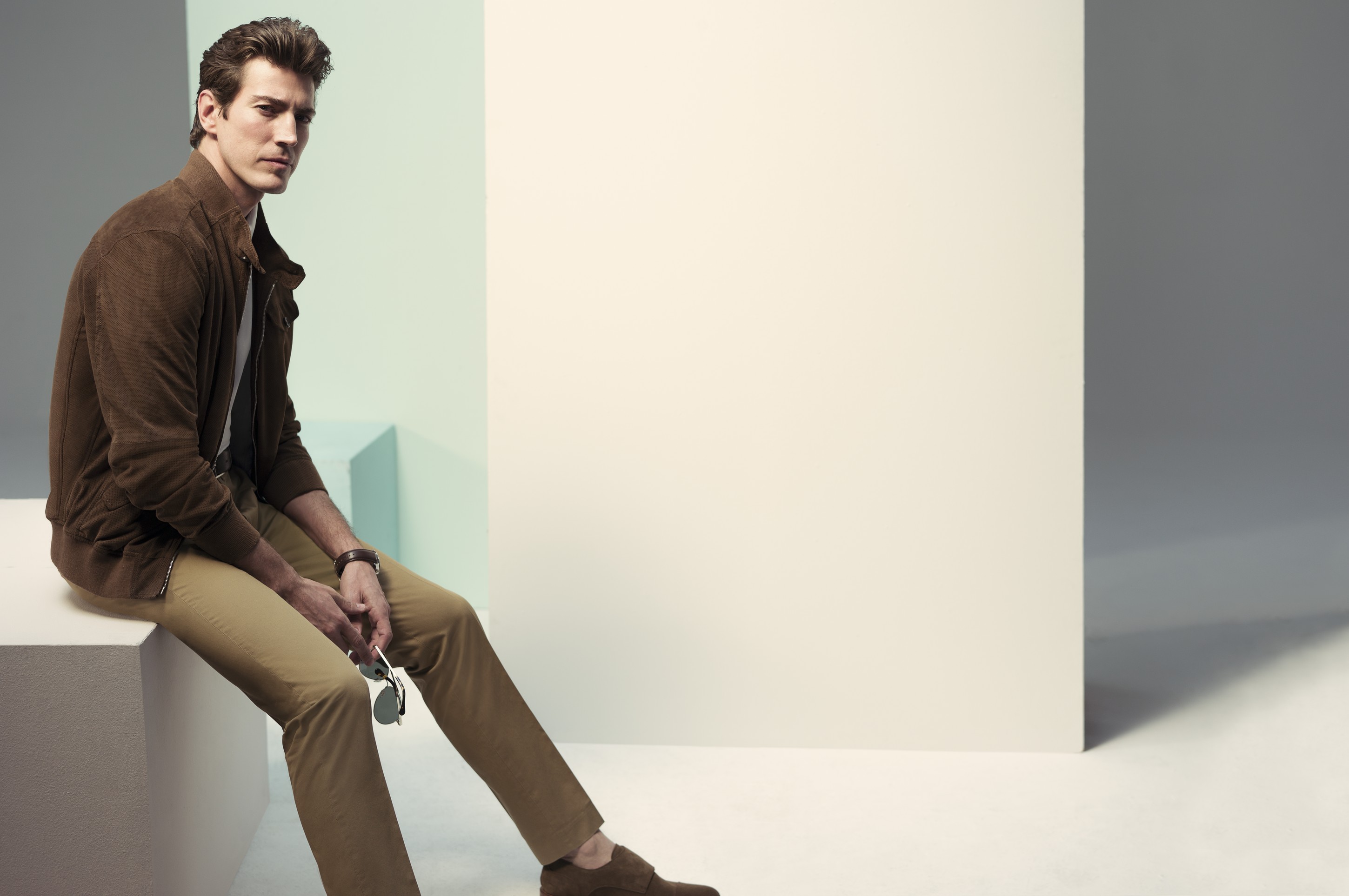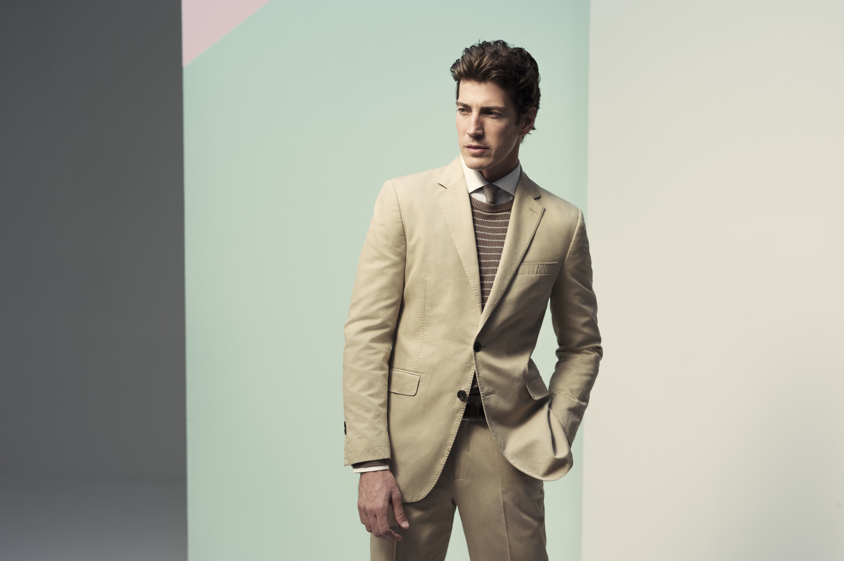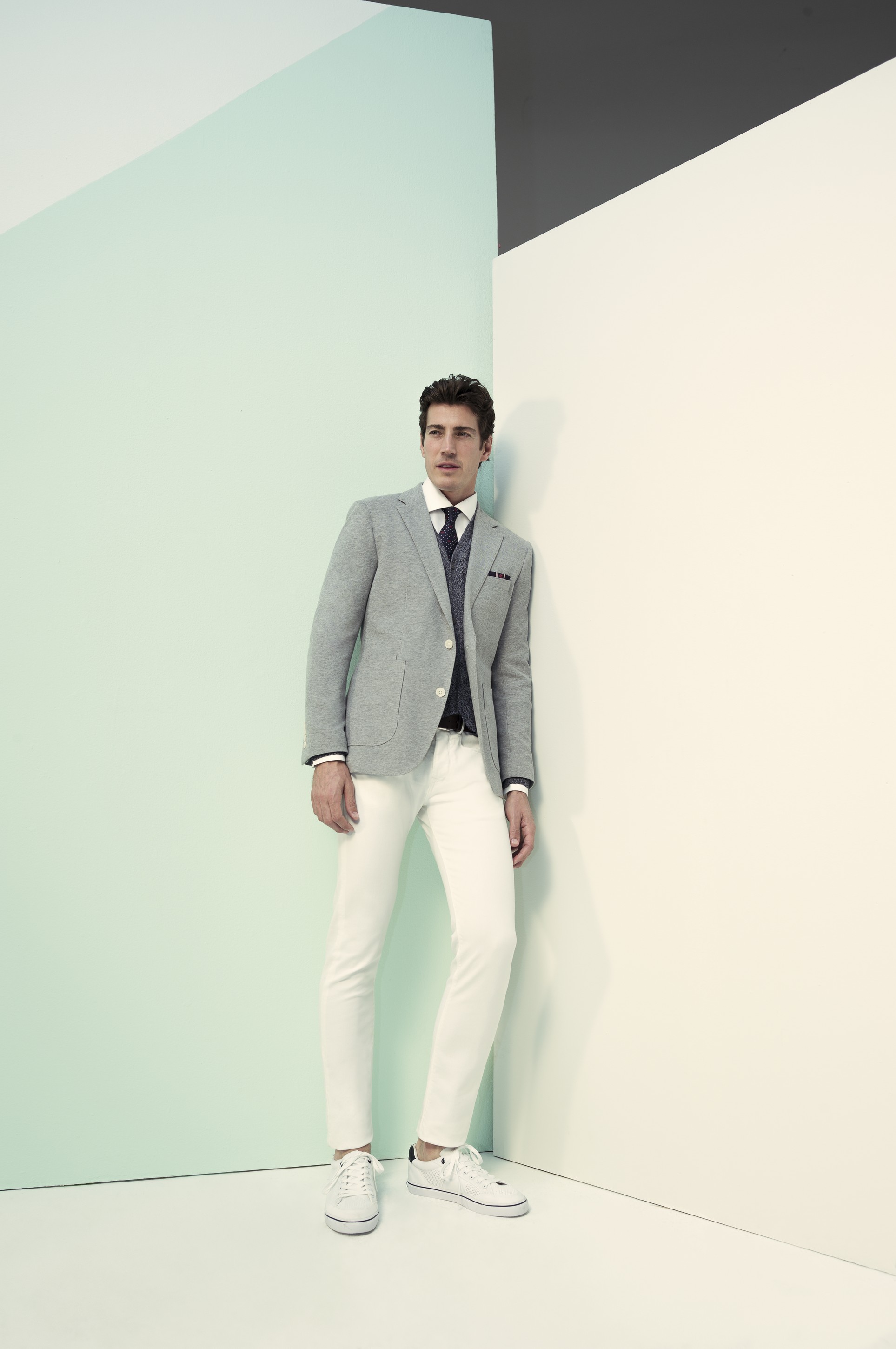 При создании мужской линии дизайнеры Pedro del Hierro вдохновлялись работами художников-абстракционистов — как для кэжуал-силуэтов, так и для классических. Здесь запросто сочетаются оттенки синего с пастельными, спокойные серые с насыщенным аквамарином, нежный розовый с хаки. Особого внимания, наравне с нейлоновыми куртками и приятным трикотажем, заслуживает линия рубашек non-iron, которая в этом сезоне дополнена новыми формами воротника. На каждый день дизайнеры советуют выбирать простые джинсы, которые уместны практически в любой ситуации, в сочетании с блейзерами.