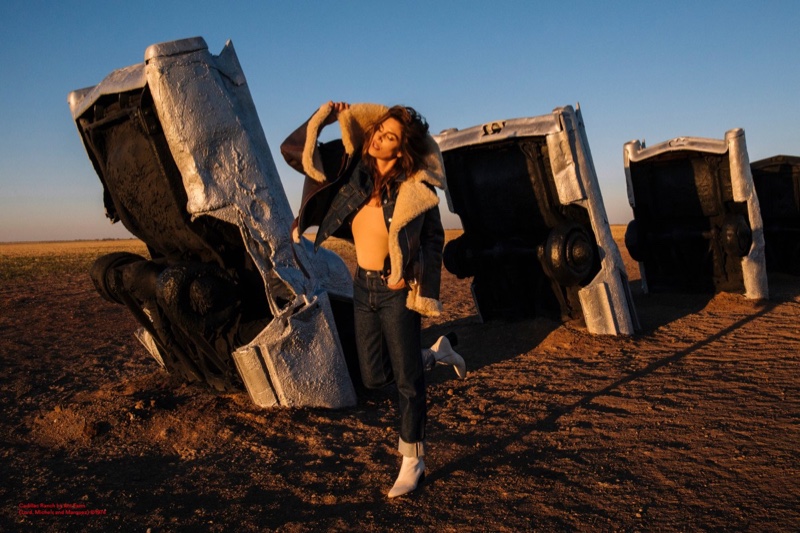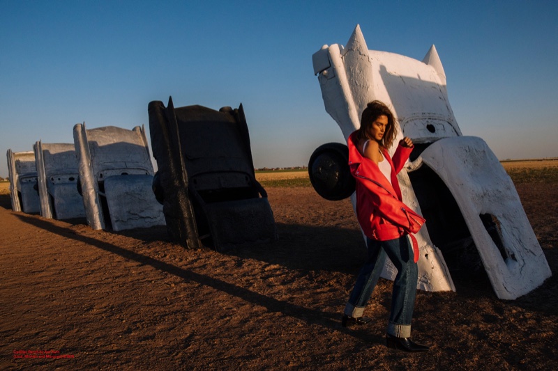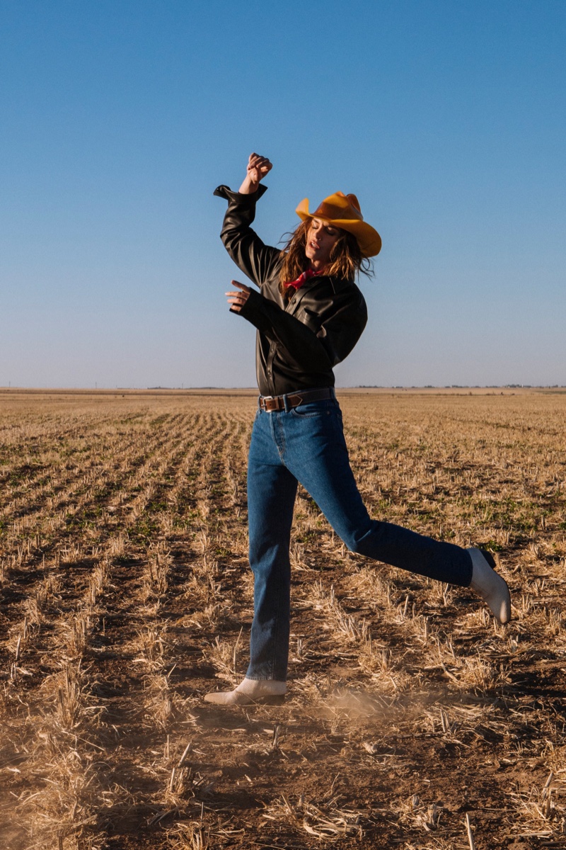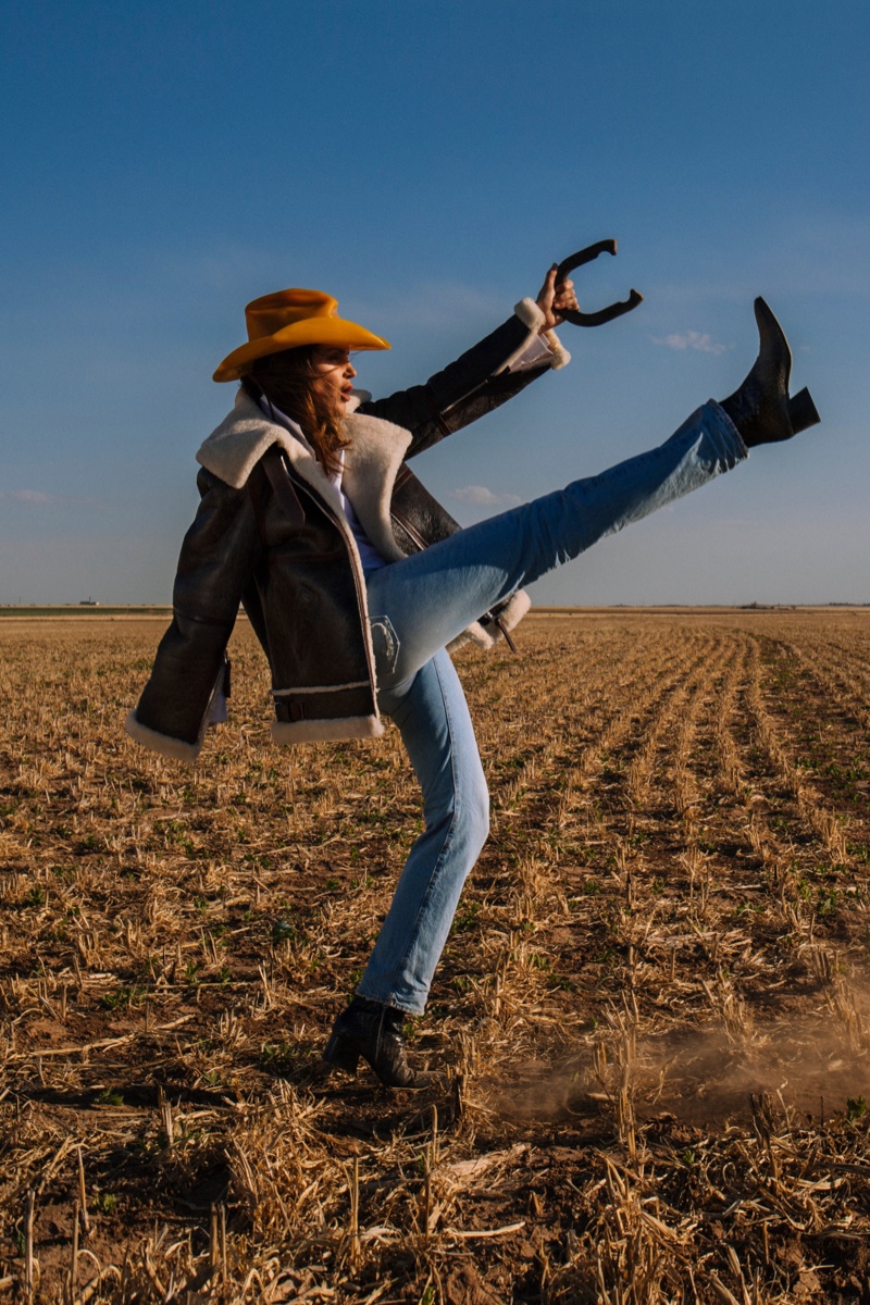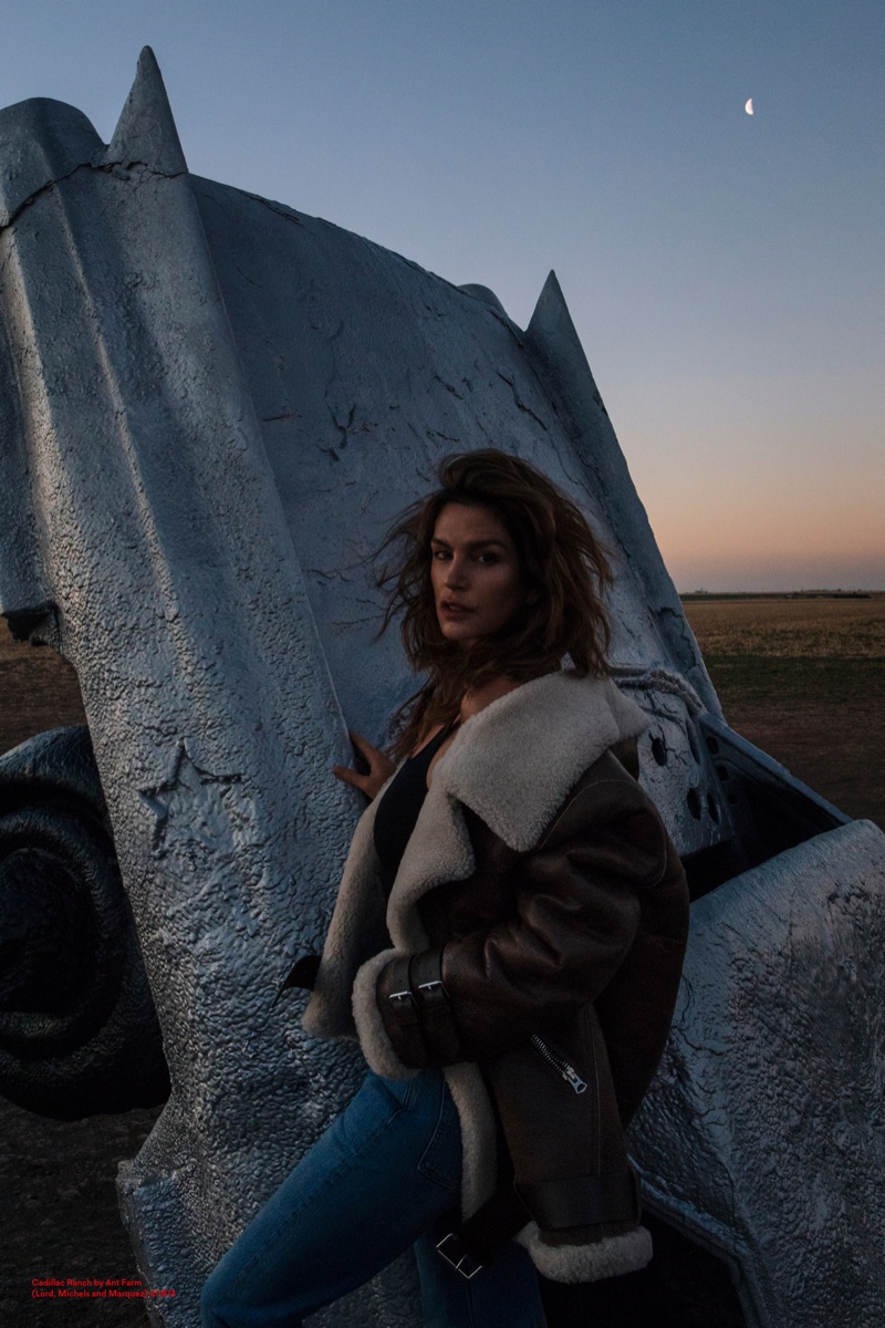 Для своей новой рекламной кампании шведский бренд Acne Studios пригласил супермодель Синди Кроуфорд. В объективе Сэма Абелла модель в кожаных куртках, дениме и дубленках танцует и наслаждается просторами ранчо Кадиллак в штате Техас.