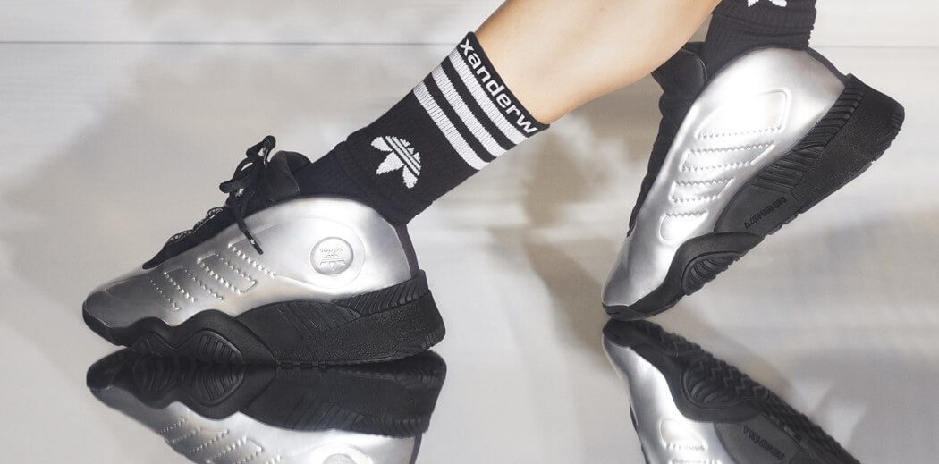 Коллекция состоит из объемных толстовок, спортивных штанов в стиле ретро и юбок и, конечно же, кроссовок. Все вещи украшены логотипами Adidas и Alexander Wang.