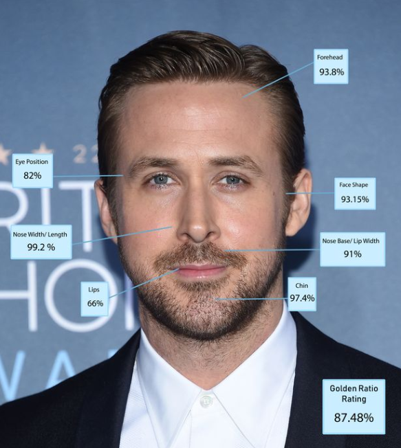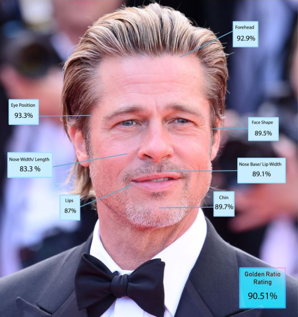 Британский пластический хирург Джулиан Де Сильва с помощью искусственного интеллекта составил список из 10 мужчин, соответствующих идеалу красоты. Лидером рейтинга стал 33-летний актер Роберт Паттинсон. По словам Де Сильвы, лицо Роберта на 92,15% соответствует идеалу. Во внимание брали физическую привлекательность, а именно соотношение губ, подбородка и глаз.