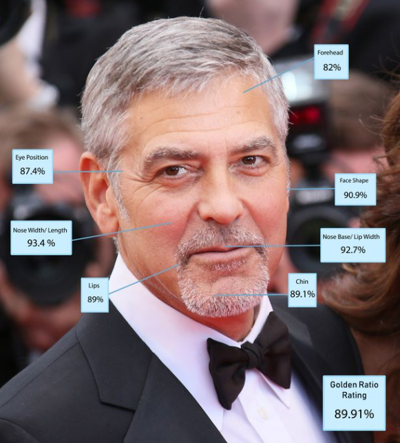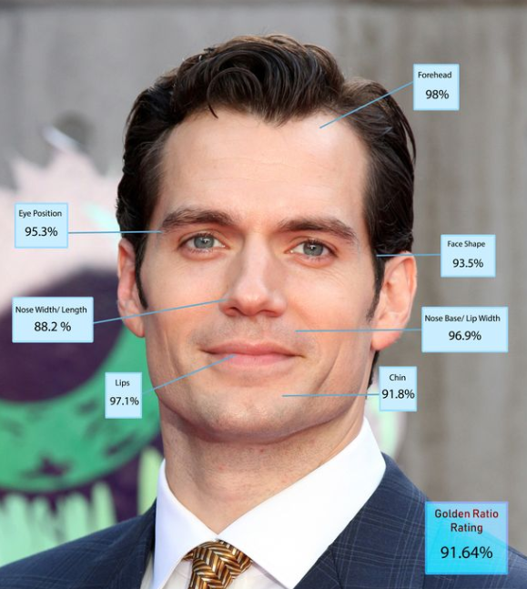 2-м в списке оказался актер Генри Кавилл, его лицо соответствует идеалу на 91,64%, 3-ю позицию занял Брэдли Купер (91,08%). Пятерку самых красивых мужчин закрывают актер Брэд Питт (90,51%) и Джордж Клуни (89,91%).