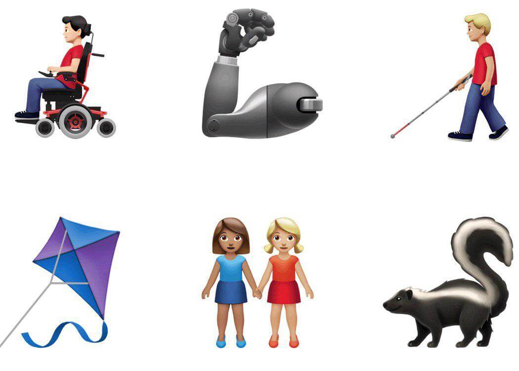 В начале года компания Unicode рассказала о запуске более 230 новых эмодзи, чтобы пользователи могли идентифицировать себя с digital-изображениями. Среди них появятся символы людей с ограниченными возможностями: ухо со слуховым аппаратом, протез руки и ноги, люди в инвалидных колясках и собака-поводырь.