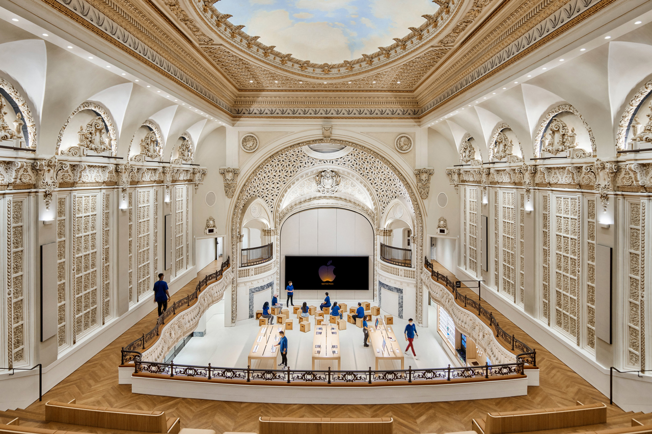 Новый магазин – один из самых масштабных проектов Apple. Здание первого кинотеатра в ЛА официально открыли в 1927 году, и вплоть до 1988 года здесь показывали кино. Затем здание было закрыто. Компании пришлось полностью отреставрировать бывший кинотеатр как внутри, так и снаружи. Реставрации способствовали местные власти, а также команда специалистов по охране природы, архитекторы, дизайнеры и историки. Удалось полностью восстановить башню с часами, бродвейский шатер, терракотовый фасад и спасти историческую вывеску.
