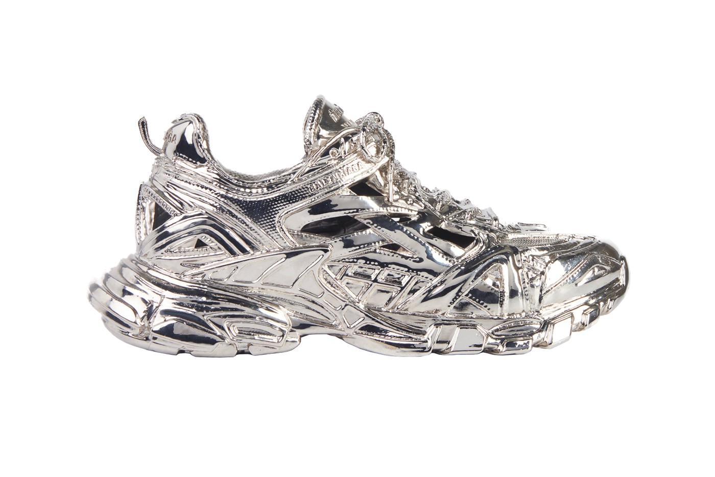 Balenciaga выпустили бронзовые кроссовки самой популярной модели бренда — Track.2. Скульптура представляет собой точную копию кроссовок 41 европейского размера.