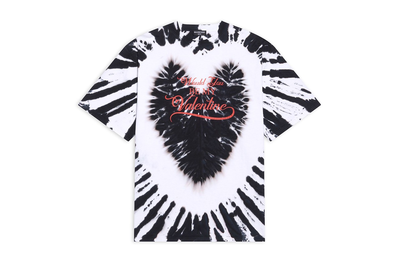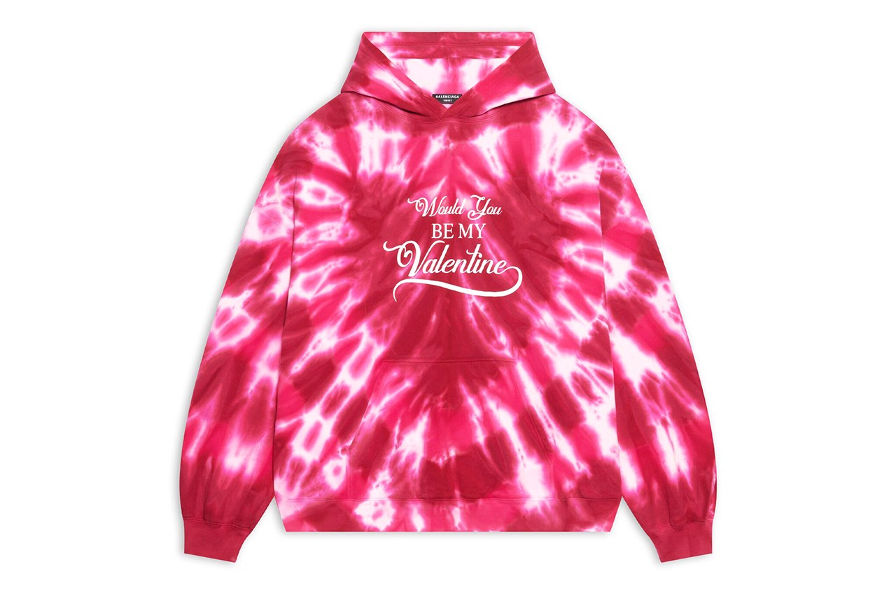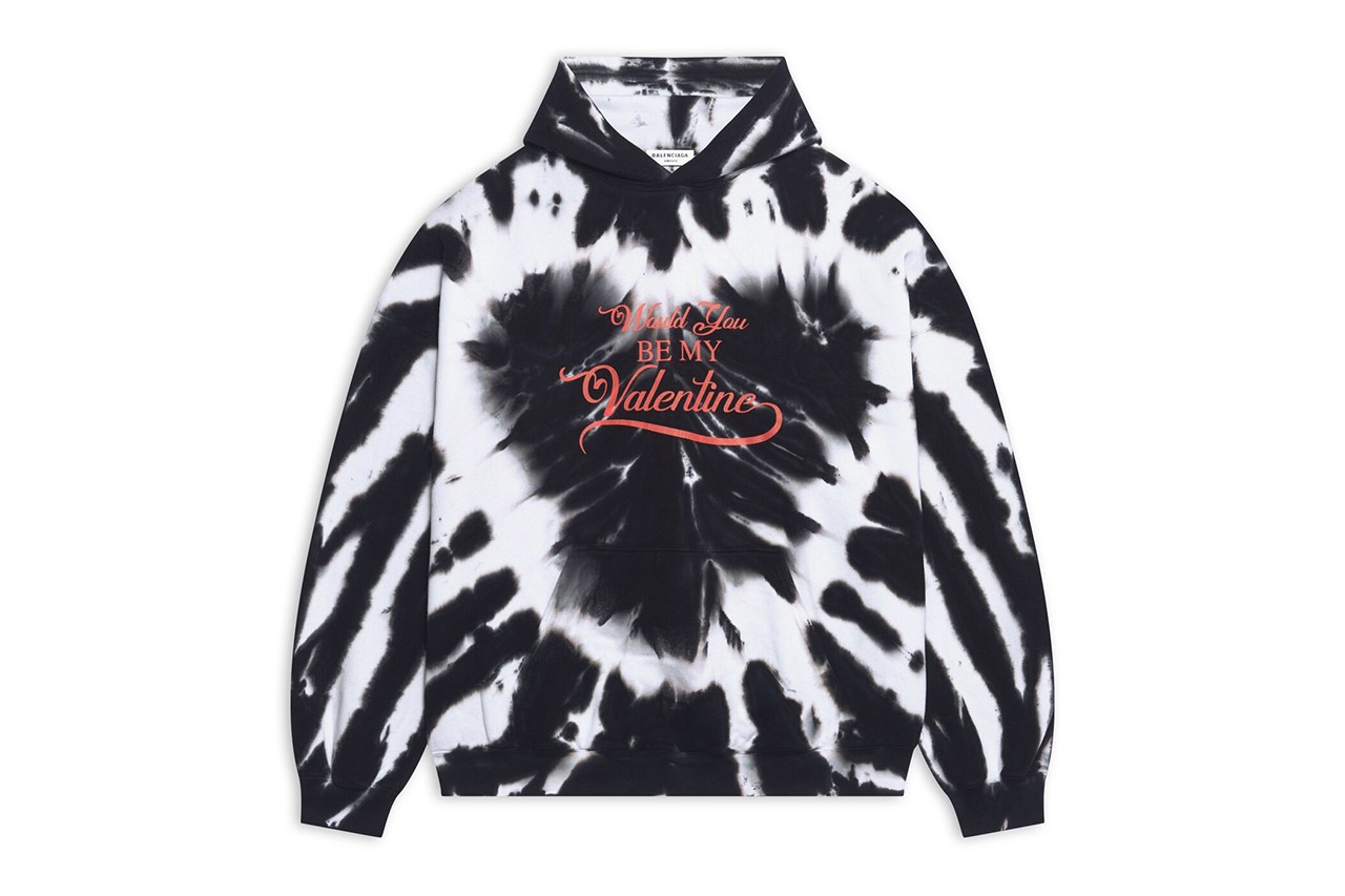 В коллекции появились худи и футболки тай-дай с надписью Would You Be My Valentine. Линейку аксессуаров представили кошельки и картхолдеры с красными сердцами, мини-сумка Hourglass в новом оттенке, серьги, кулоны и ожерелья с декоративными элементами в форме сердца. Одним из редких элементов для коллекций Balenciaga стало красное полупрозрачное нижнее белье.