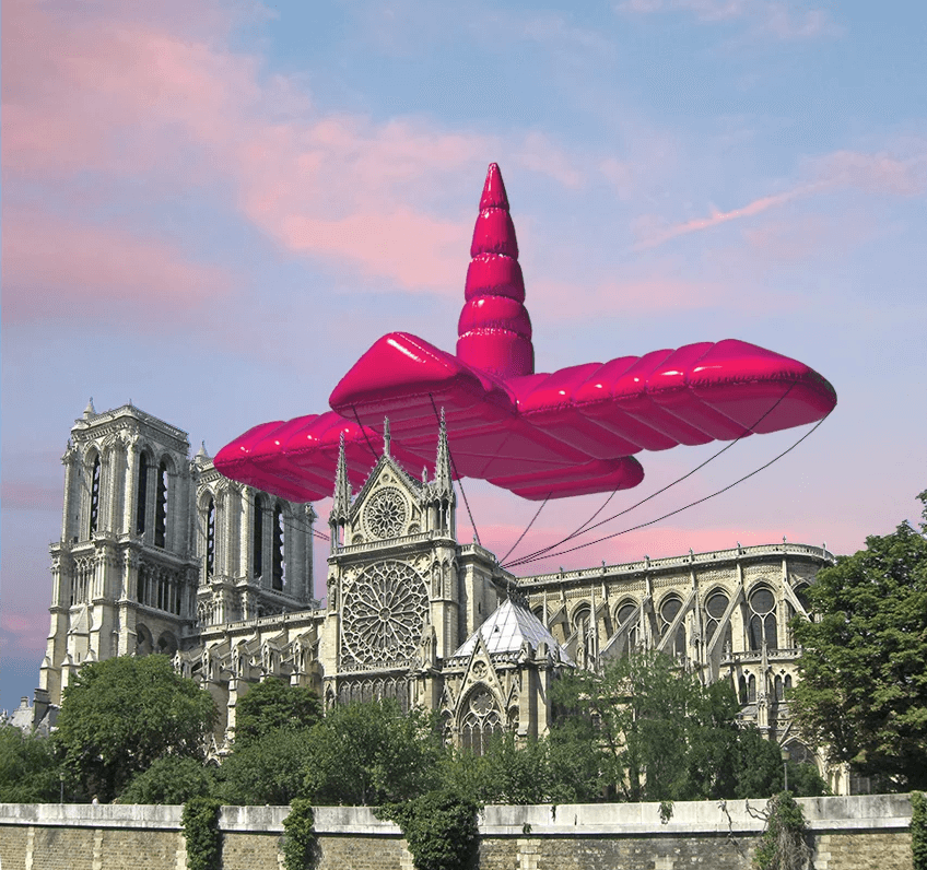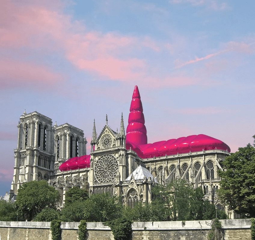 Архитектурное бюро Shepherd Studio предложило временное решение на период реконструкции. Согласно проекту Divine Intervention, крышу собора накроют надувной подушкой, которая будет взлетать в небо ночью и возвращаться на место к утру. По словам архитекторов, надувной шар “вернет Нотр-Даму былой объем” и перенесет посетителей парижского острова Сите в детские фантазии.