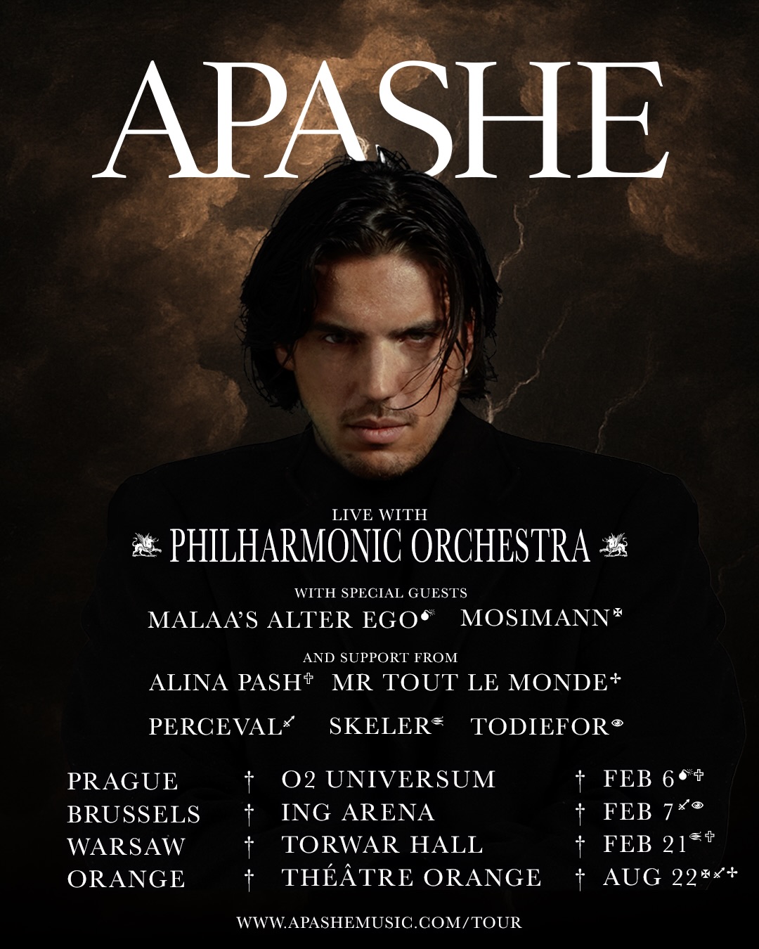 Apashe — бельгійського походження, нині мешкає в Канаді. Він відомий поєднанням електронної музики з симфонічними оркестровими аранжуваннями, елементами хіп-хопу та бас-музики. Його треки сумарно зібрали понад 1 мільярд стримів по всьому світу. Альбом Antagonist отримав схвальні відгуки критиків і включав колаборації з Busta Rhymes, Joey Valence & Brae та Flux Pavilion. Apashe також відомий масштабними лайв-шоу з живими інструментами та візуальними постановками, які він представляв на фестивалях Tomorrowland, Lollapalooza Paris, Electric Forest та інших.